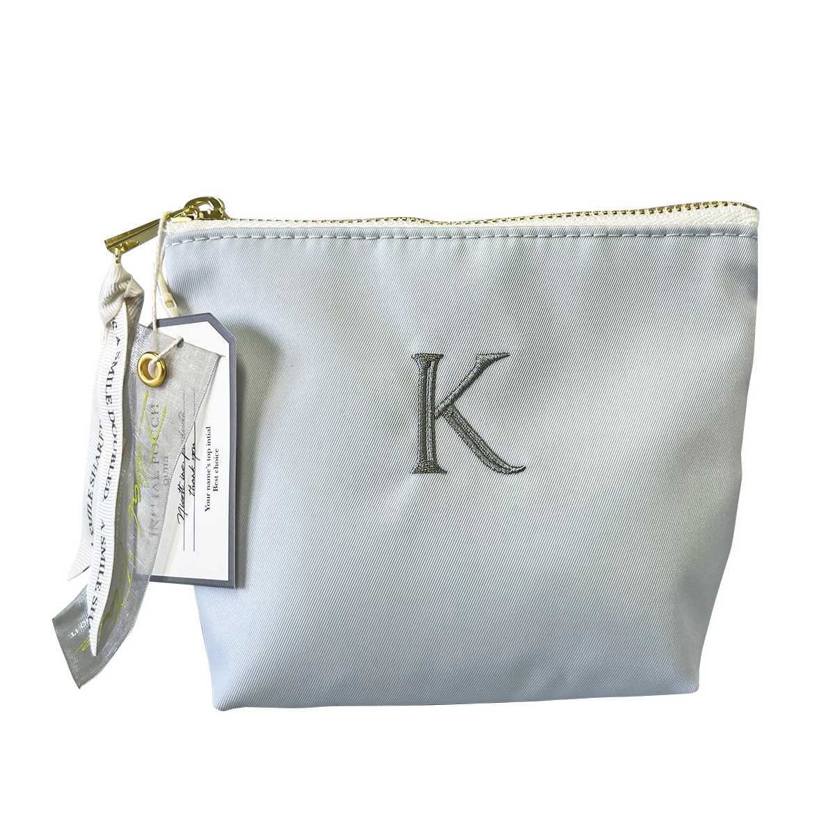 イニシャル刺繍入りの小ぶりで特別感のあるポーチ