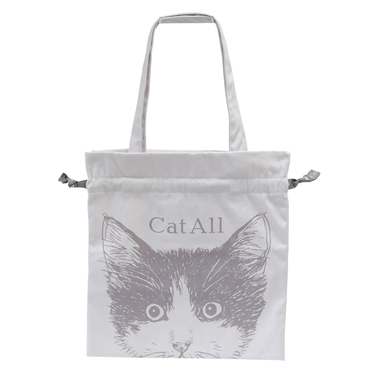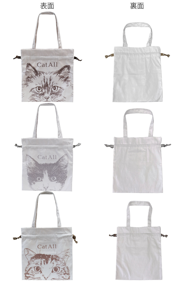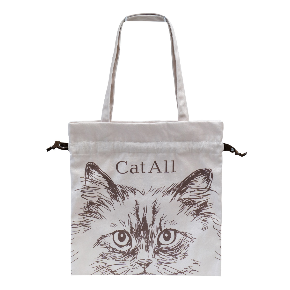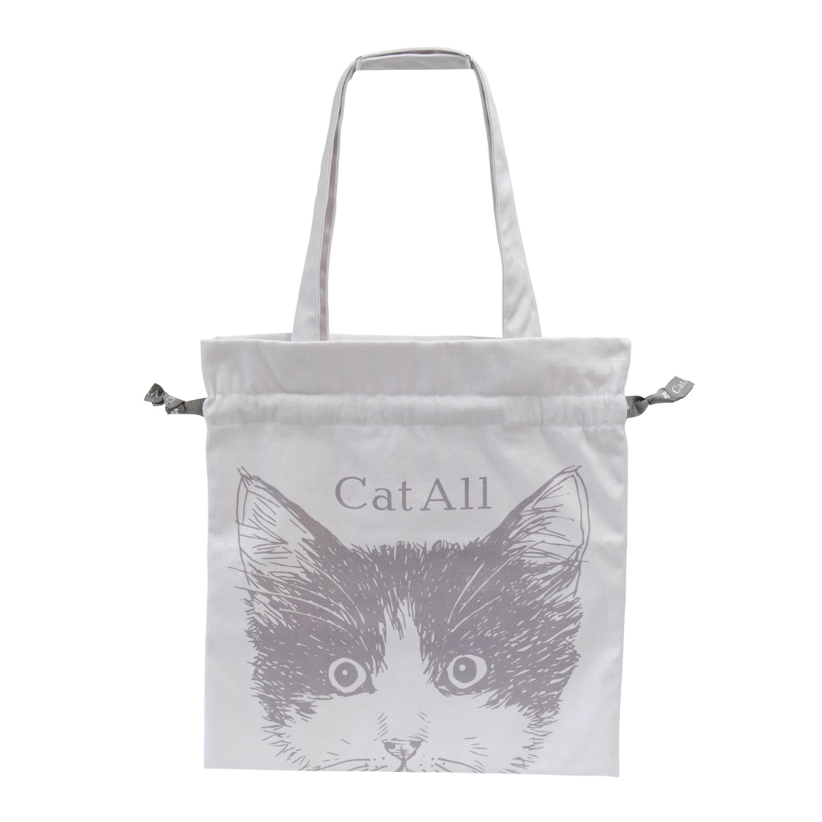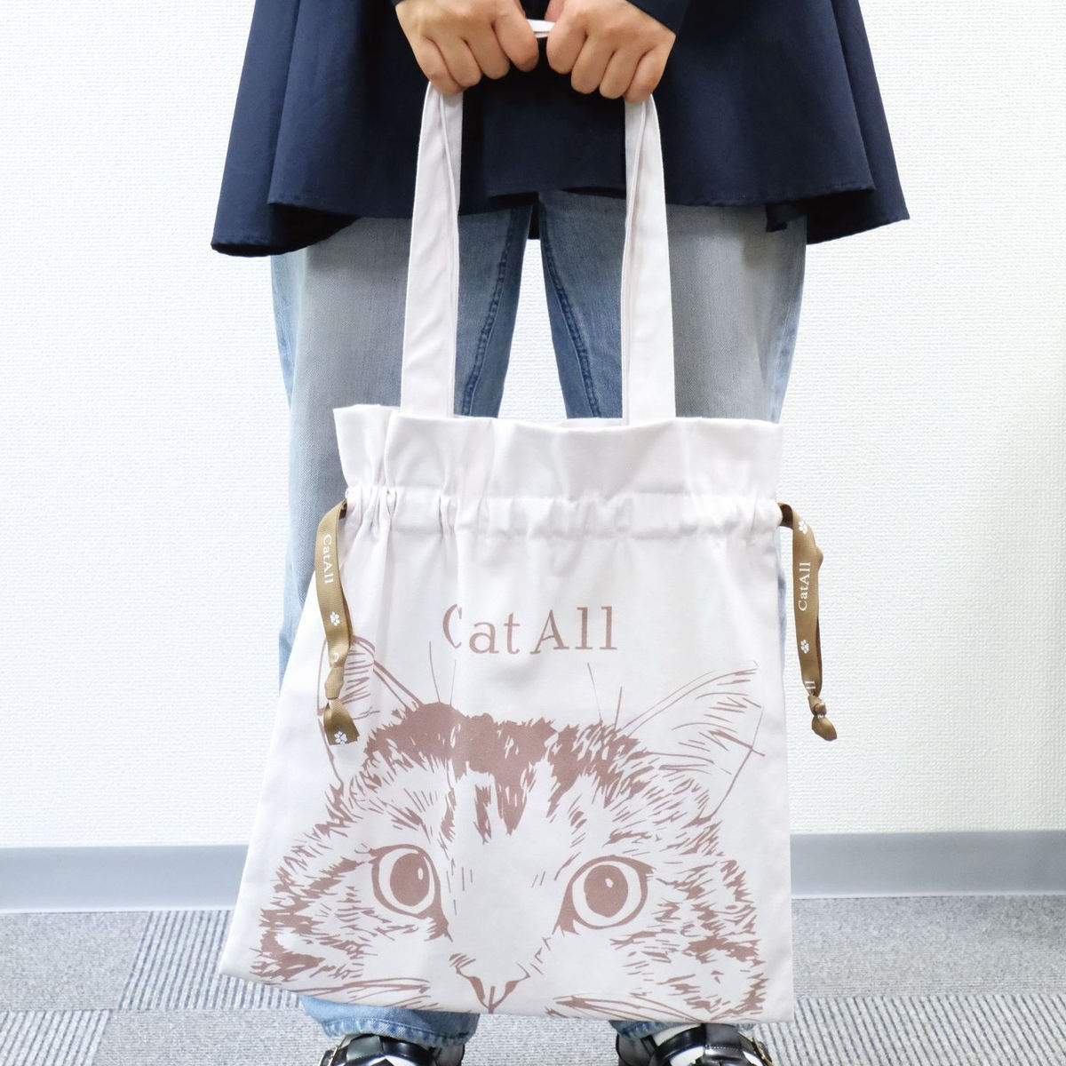 巾着の紐には「Cat All」シリーズのロゴや肉球がデザインされており、細かな部分までこだわられています。