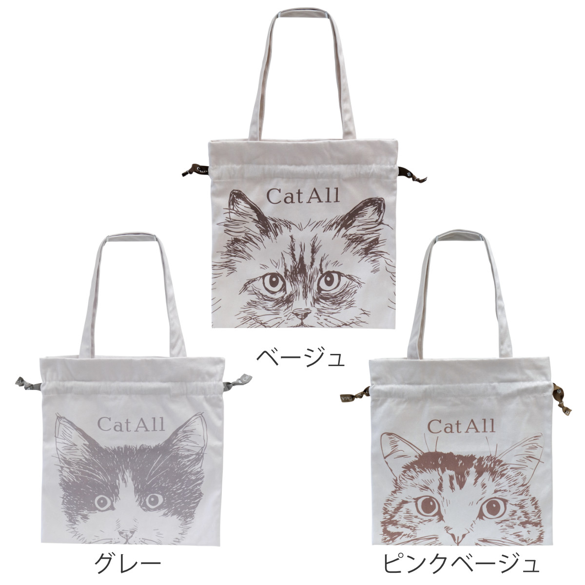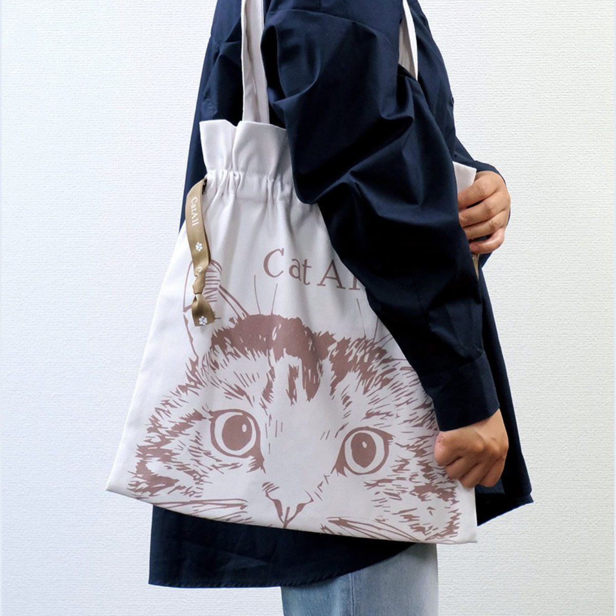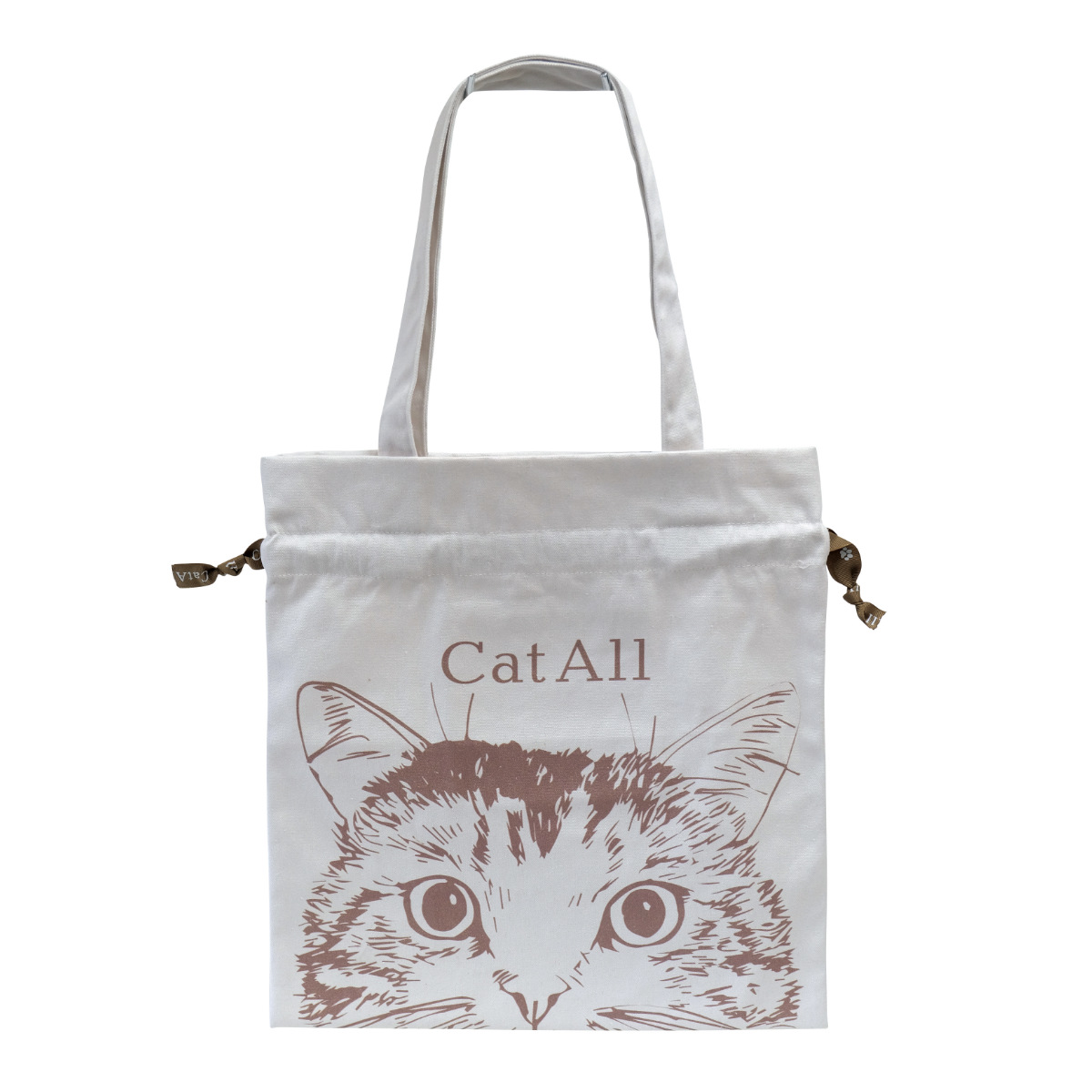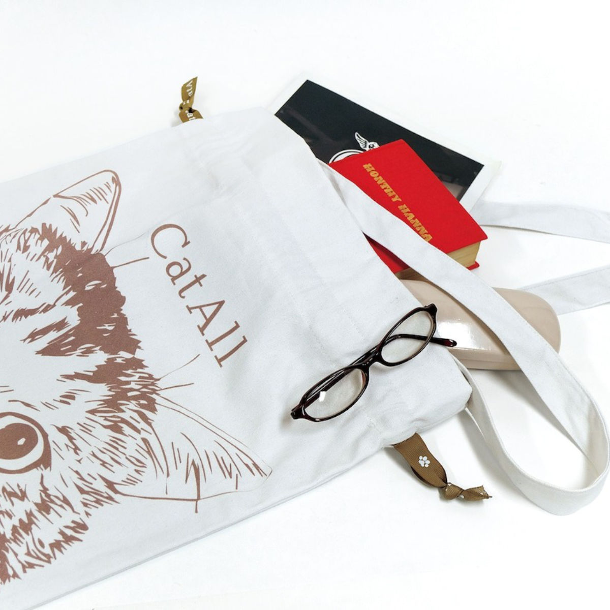 巾着の紐には「Cat All」シリーズのロゴや肉球がデザインされており、細かな部分までこだわられています。