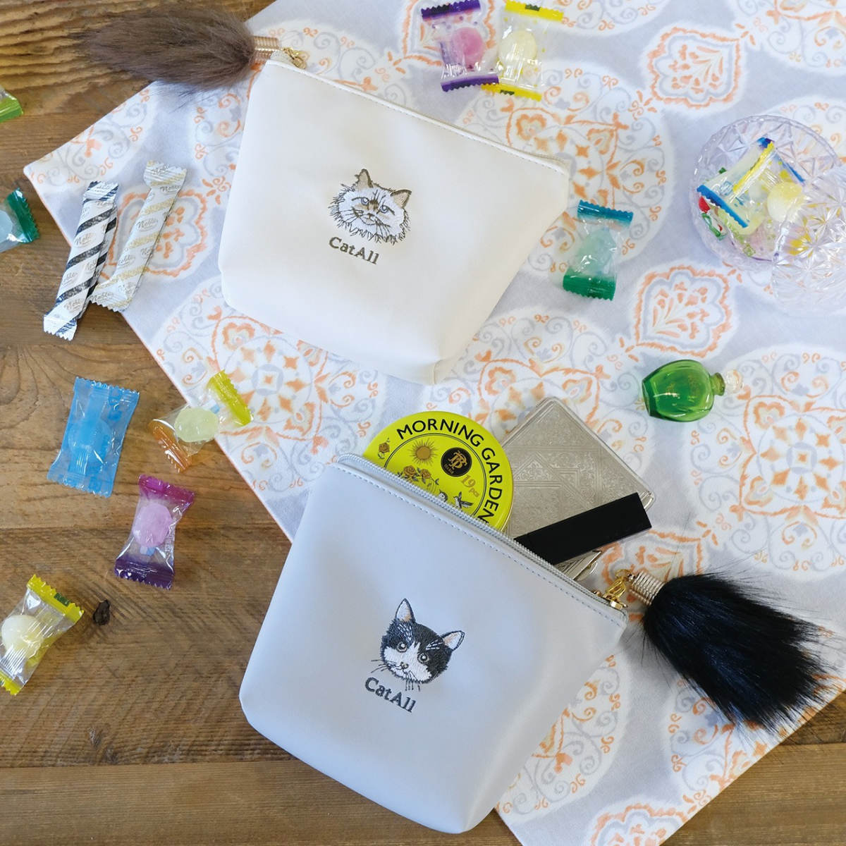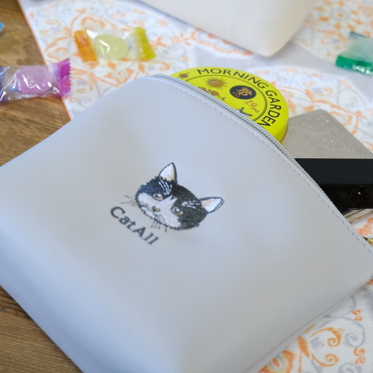 イラストレーターのカワムラ オリエさんがデザインした可愛いネコちゃんが刺繍されたポーチです。ご自分用にはもちろん、猫好きさんや動物好きさんへ、ご家族や大切な方へのプレゼントにもおすすめです。