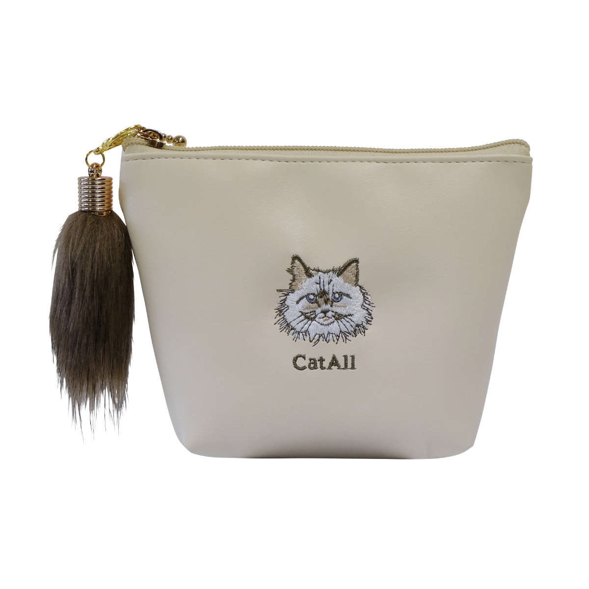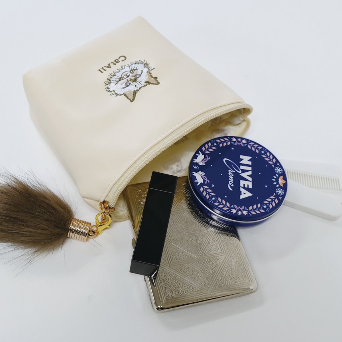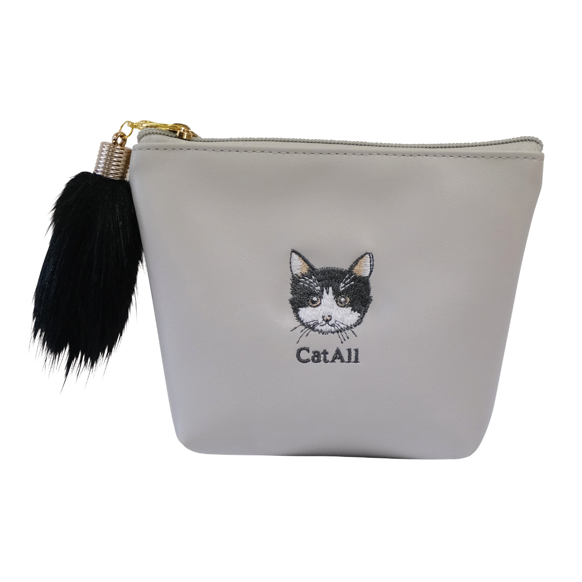 ファスナー部分にはネコちゃんのしっぽが付いています。持つたびに揺れる可愛さがあります。