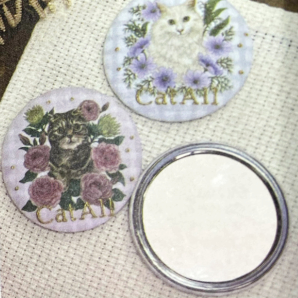 イラストレーターのカワムラ オリエさんがデザインした可愛いネコちゃんが描かれたミラーです。ネコちゃんのプリントと金糸の刺繍が可愛く、毎日を彩ってくれます。ご自分用にはもちろん、猫好きさんや動物好きさんへ、ご家族や大切な方へのプレゼントにもおすすめです。