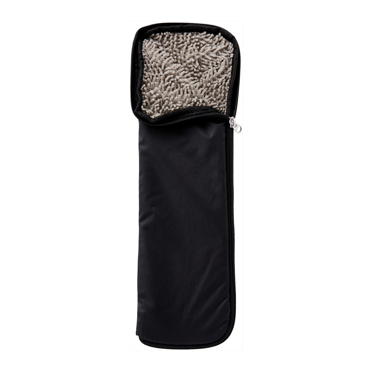 濡れた折りたたみ傘を収納できるカバーです。特許取得の高吸収マイクロファイバーが、水滴をサッと吸収します。長さ34cm、幅6.5cmまでの傘に対応。使い捨ての傘袋を使わず、カバンにしまえるエコで便利なアイテムです。