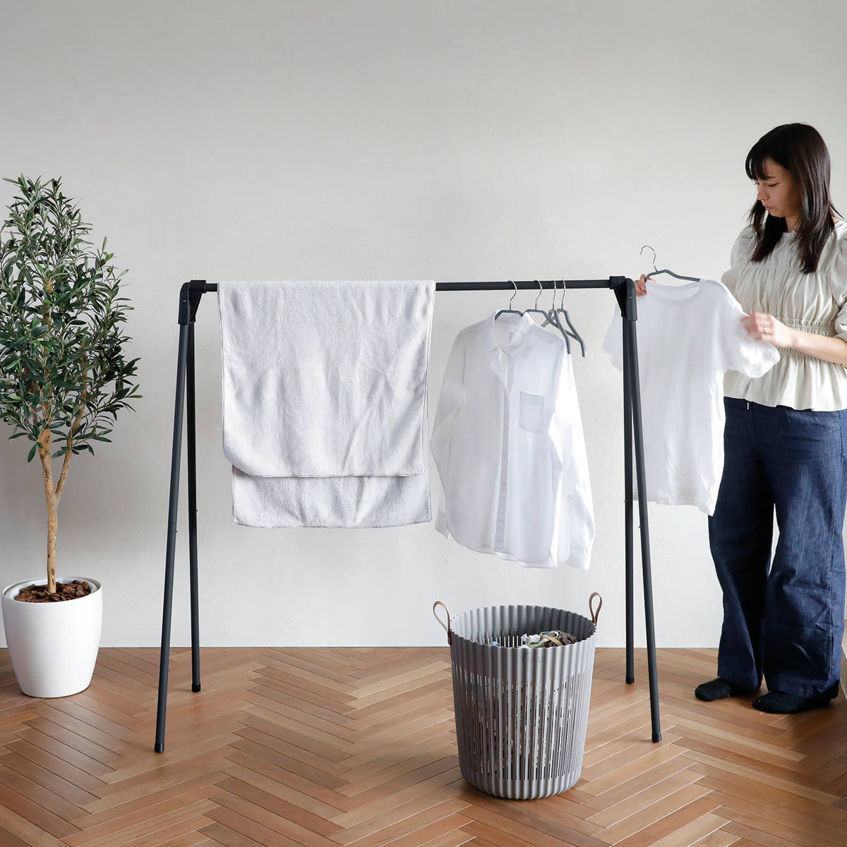 雨の日や花粉が辛い季節など、家に1つあると便利な室内干しスタンド。幅広設計なので洋服類だけでなく、バスタオルや掛け布団干しにも使えてマルチに活躍します。1人暮らしの方はリビングに置いてよく着る服を掛けたり、スペースに余裕のあるお家は玄関近くに置いてコート掛けとして使うのもおすすめです。