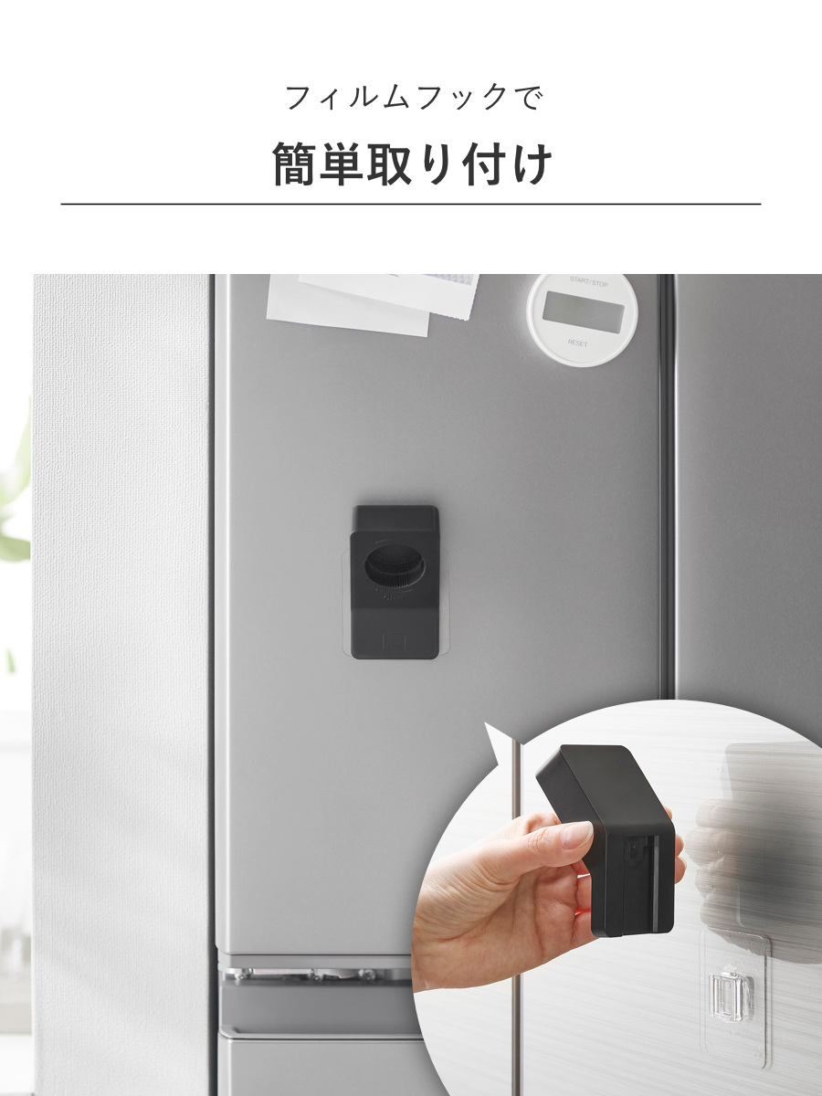 ペットボトルを簡単に開けられるキャップオープナーです。冷蔵庫やキッチンパネルなどに浮かせて設置できます。少しの力で開けられるのでシニアの方やお子様、ネイルをしている方にもおすすめです。