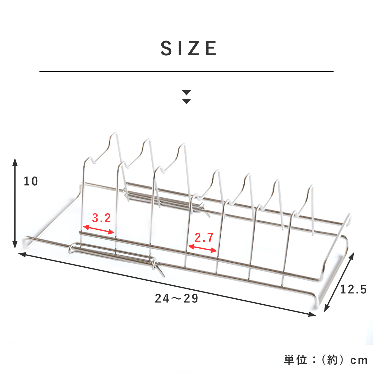 ラックの脚は約24~29cmで伸縮可能。脚を伸ばせば「水切りかごスクエアタイプ」の上に設置することができます。水切りかごとディッシュラックを並べて使うにはスペースが足りないという方にピッタリ。