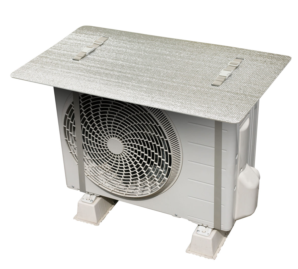 直射日光を反射して室外機を日光から守る室外機の日よけパネルです。室外機が高温になるのを防ぎ、冷房効果が低下するのを防ぎます。室外機が南向きで直射日光が当たる場所に設置してある場合は特に効果を発揮します。