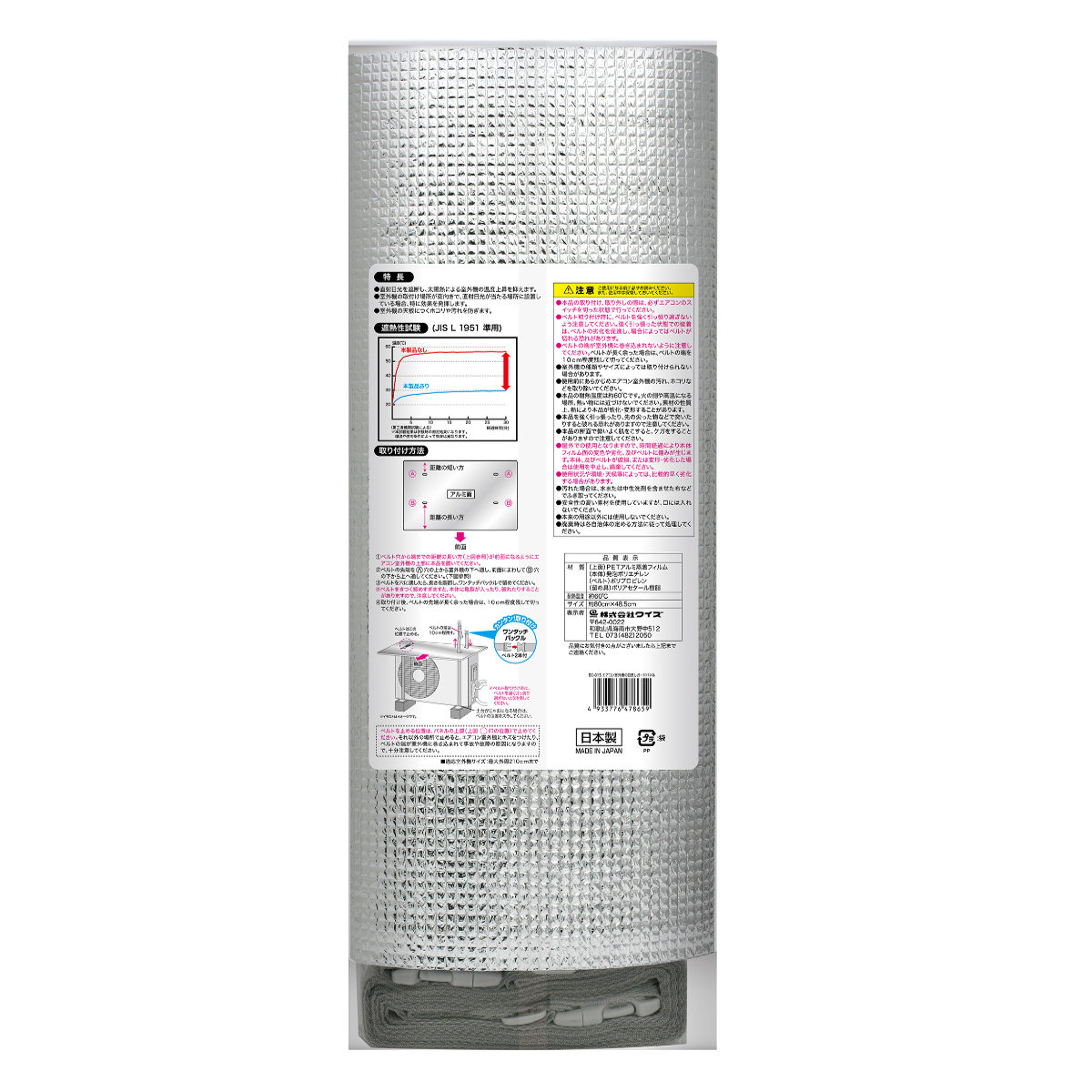 | 材質 | 上面:PETアルミ蒸着フィルム 本体:ポリエチレン ベルト、止め具:ポリプロピレン |