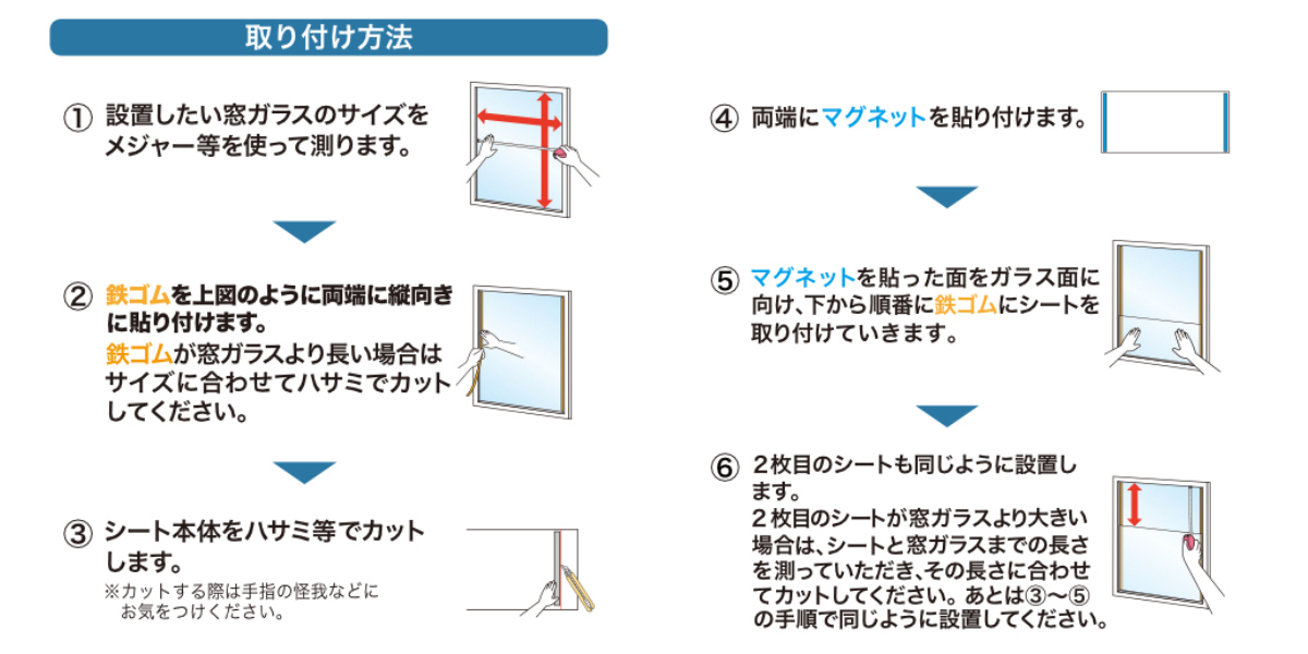 ●窓の内側からマグネットで取り付けるタイプのシートです。