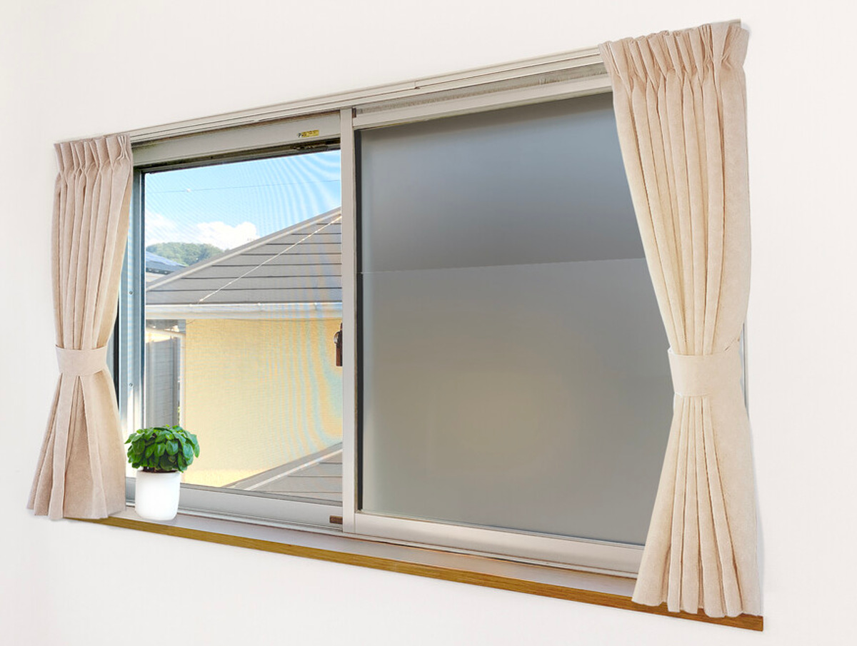 窓のサイズに合わせてカットやスライドができます。全面使いはもちろん、隠したい所だけの部分使いも可能です。カラーによって遮光率とUVカット率が異なるので設置する場所や目的に合わせて便利に使えるアイテムです。