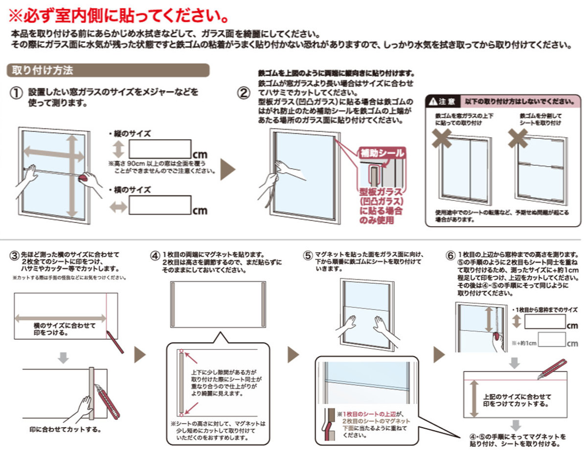 | 注意事項 | ※必ず室内側に貼ってご使用ください ※商品ページ内には別の商品を含む画像を使用しています |