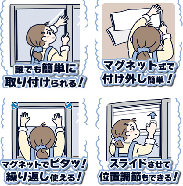 ●幅90cm×高さ90cmまでの窓に対応しています。