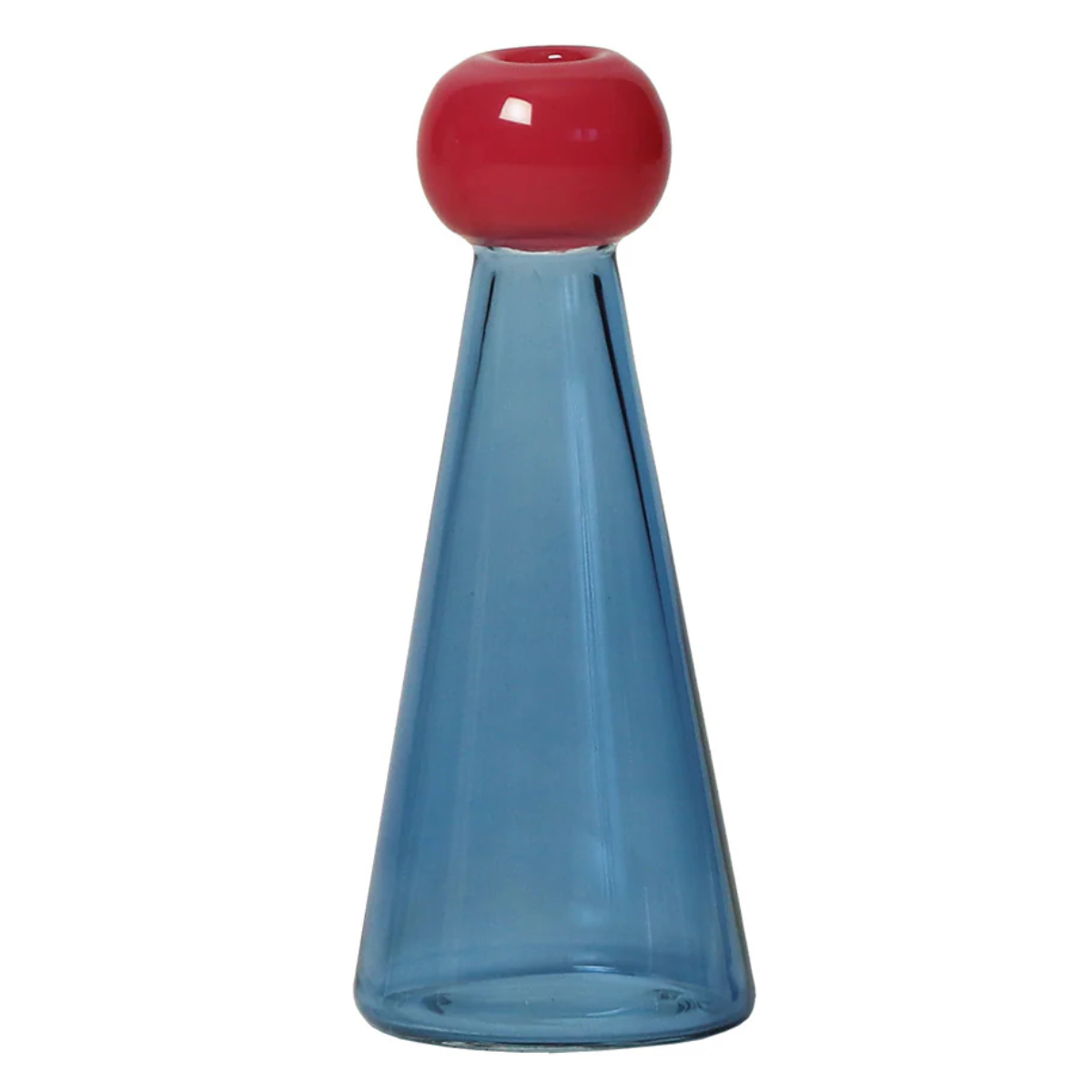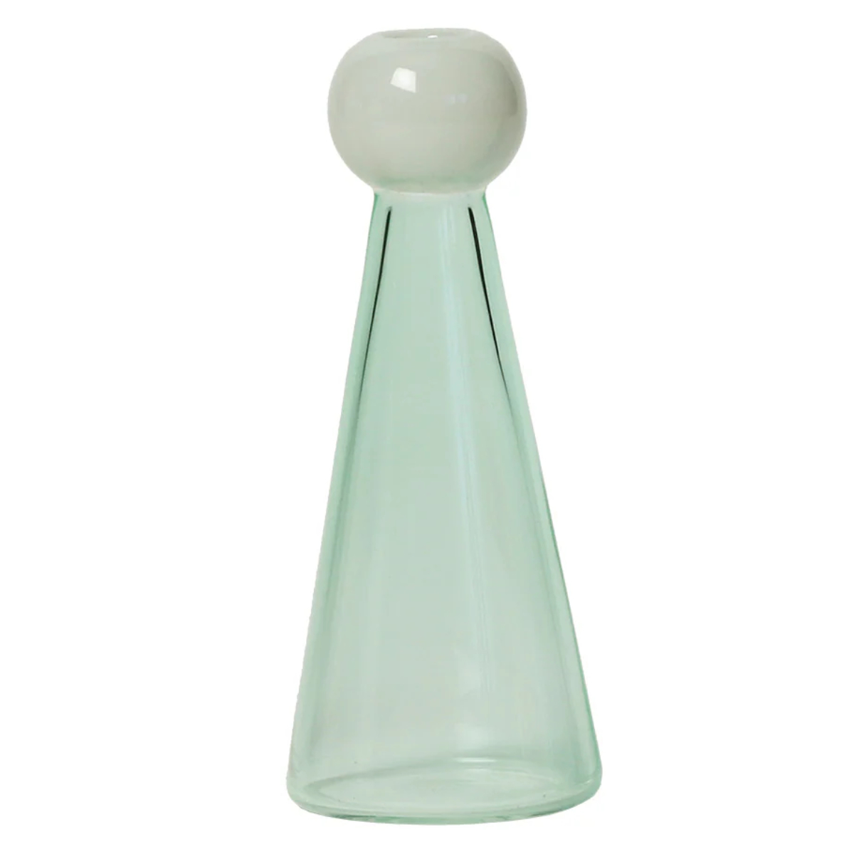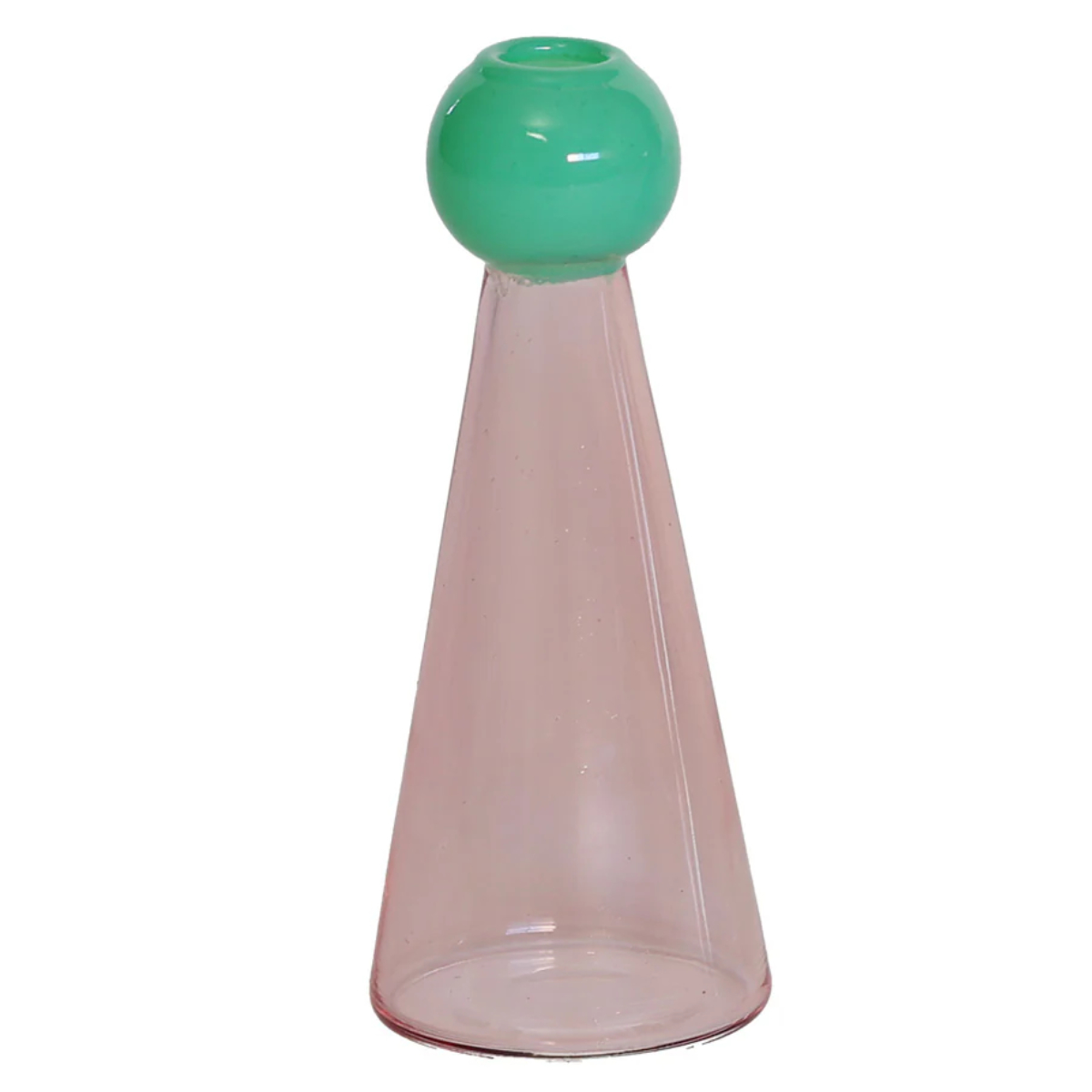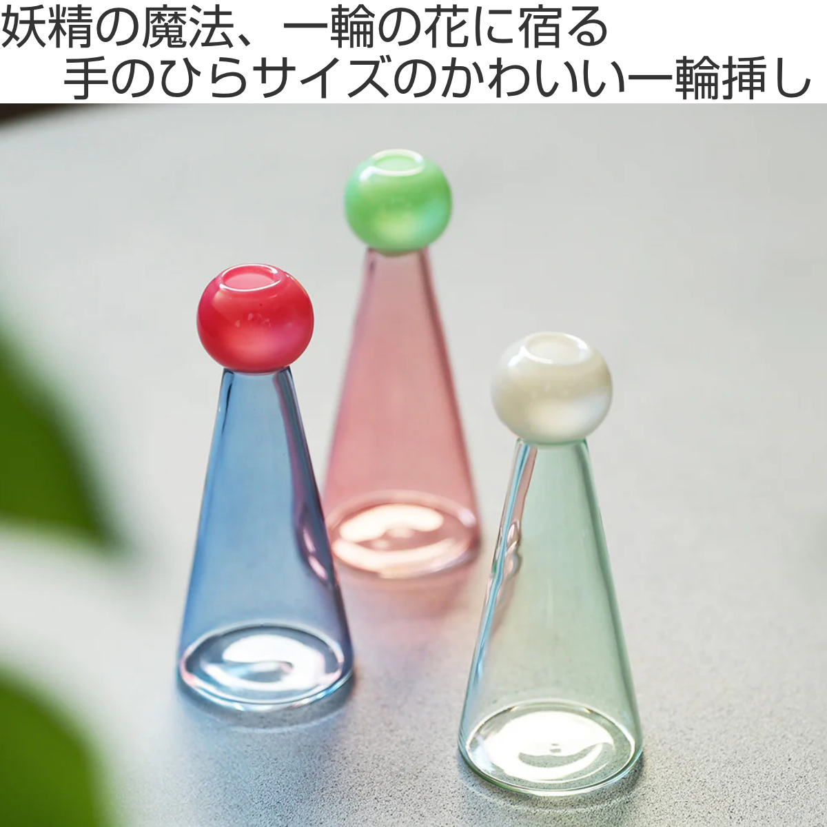 キャンディのような色合いと、ころんとしたフォルムが可愛らしい一輪挿し。透明感溢れるガラス素材に上品なパステルカラーをまとった円錐型のボディと球体型の口もとがガラスビーズのよう。ドライフラワーや枝物との相性も抜群です。