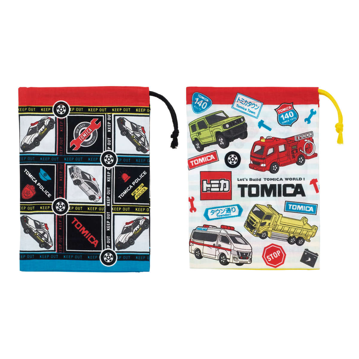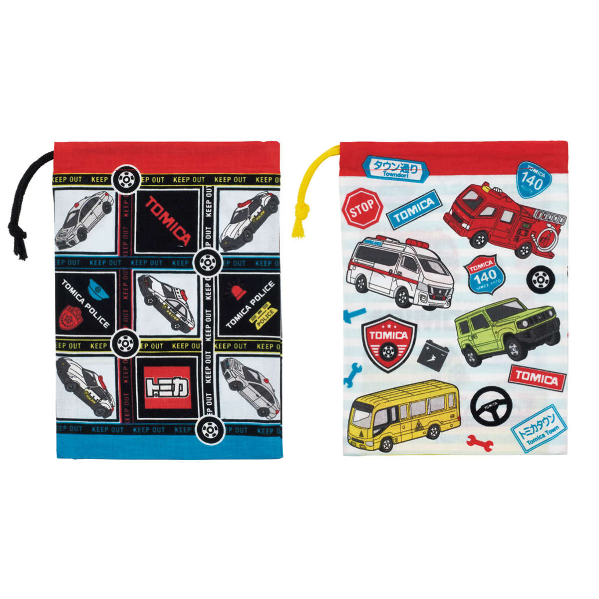 2枚の巾着袋は表と裏で異なるデザインがプリントされているので、その日の気分や持ち物に合わせて選ぶこともできます。兄弟や姉妹で分けて使ったり、洗い替え用としても活躍します。