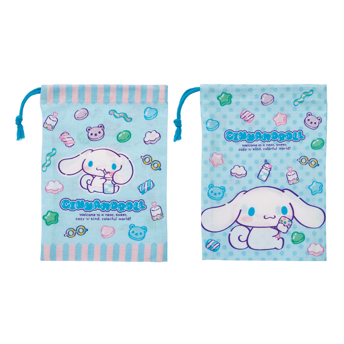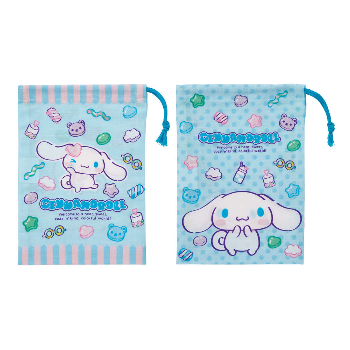 2枚の巾着袋は表と裏で異なるデザインがプリントされているので、その日の気分や持ち物に合わせて選ぶこともできます。兄弟や姉妹で分けて使ったり、洗い替え用としても活躍します。