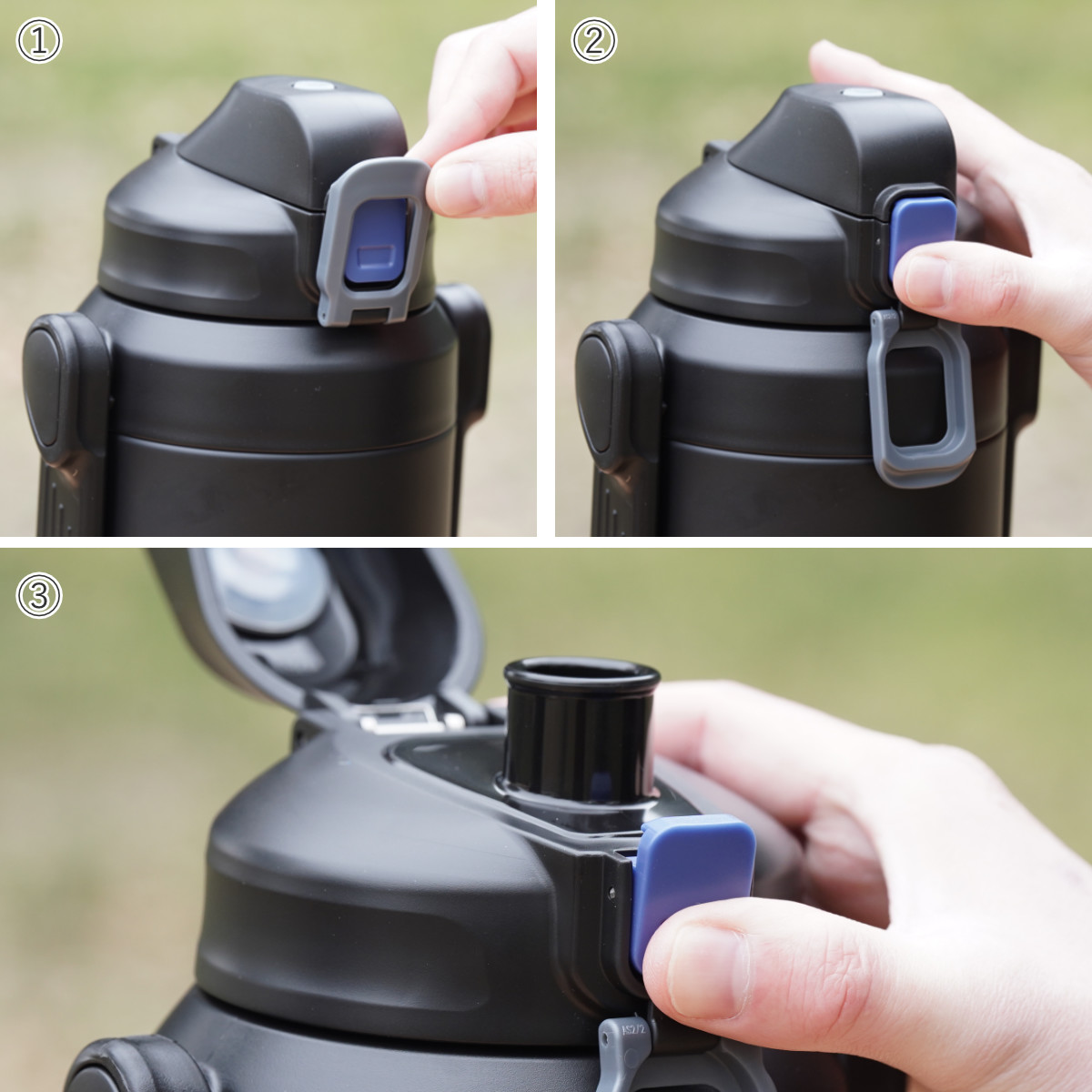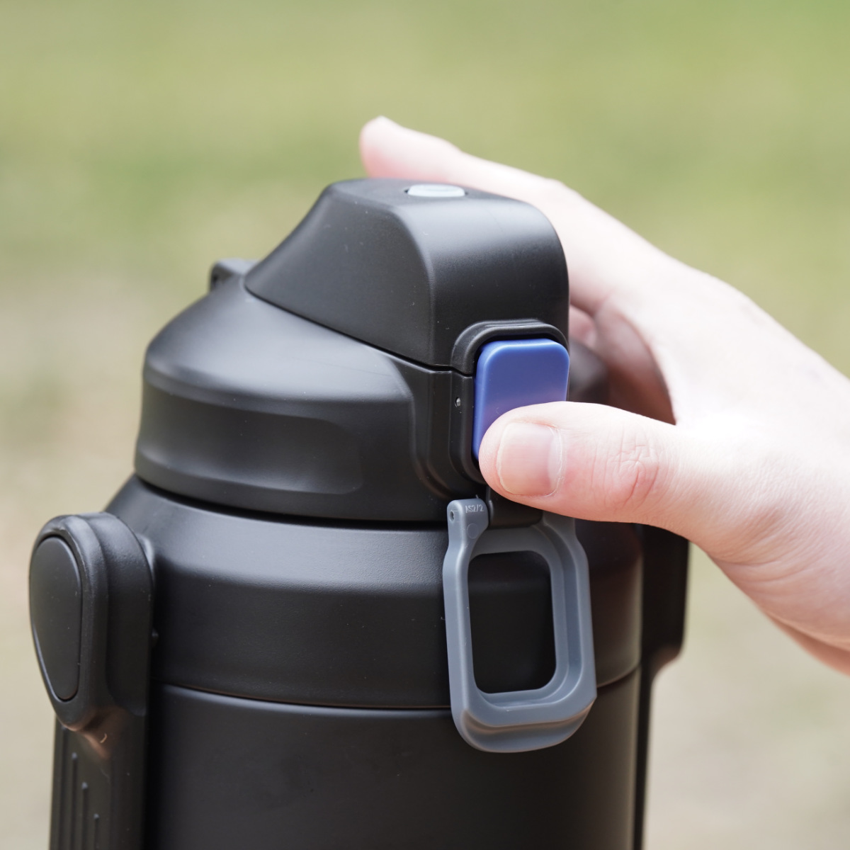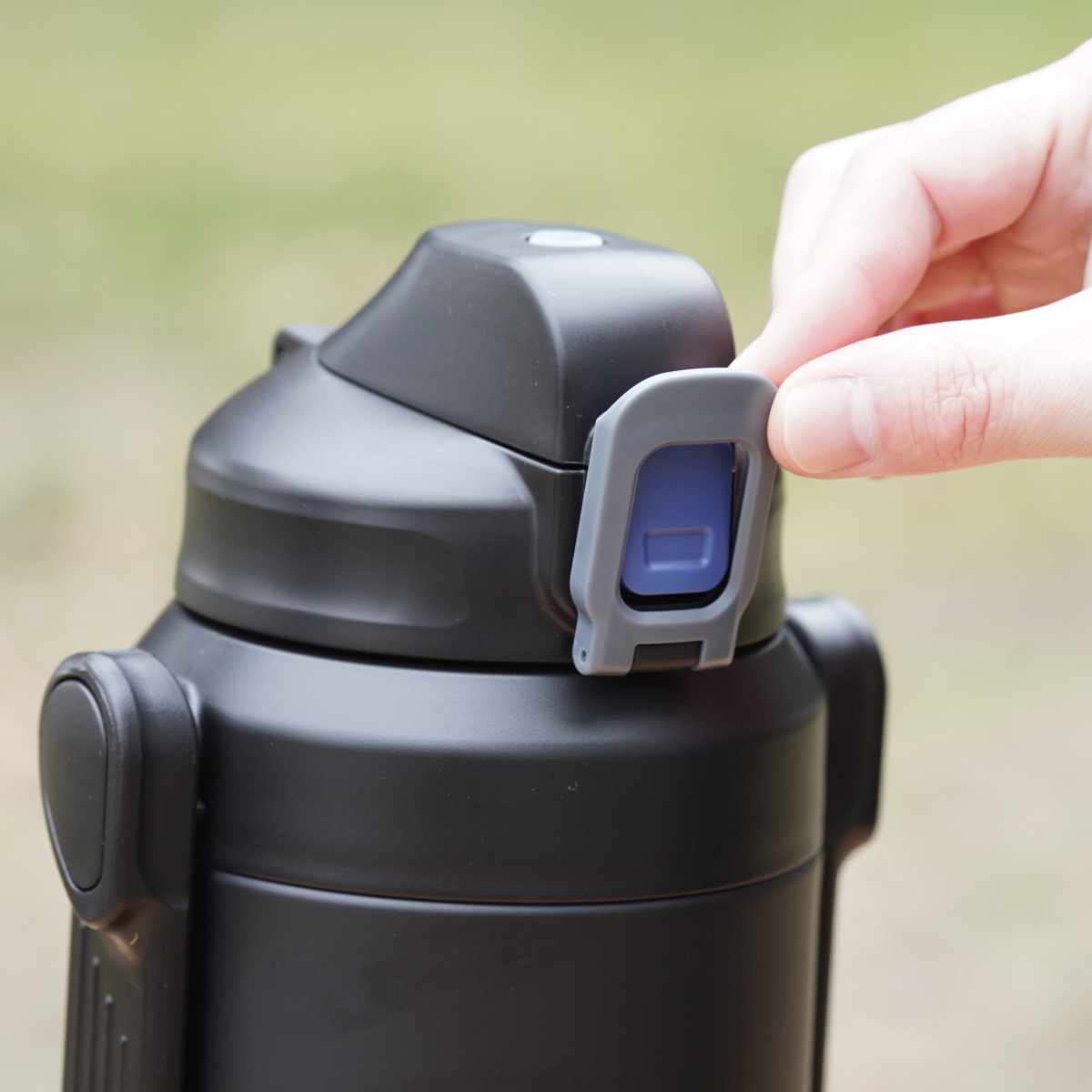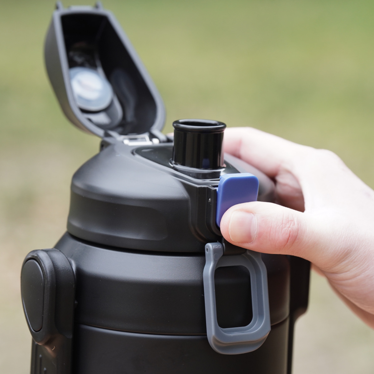 大きなロックリングで操作がしやすいです。ロックリングを外すと、ワンタッチで簡単に開き、素早く水分補給ができます。