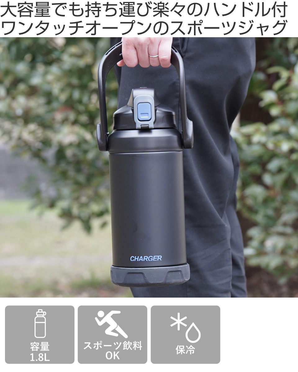 ファストチャージャージャグは1.8L、2.2L、3Lのサイズ展開があります。大容量でのラインナップのため、スポーツ時、アウトドアやキャンプなど、あらゆるシーンで活躍します。