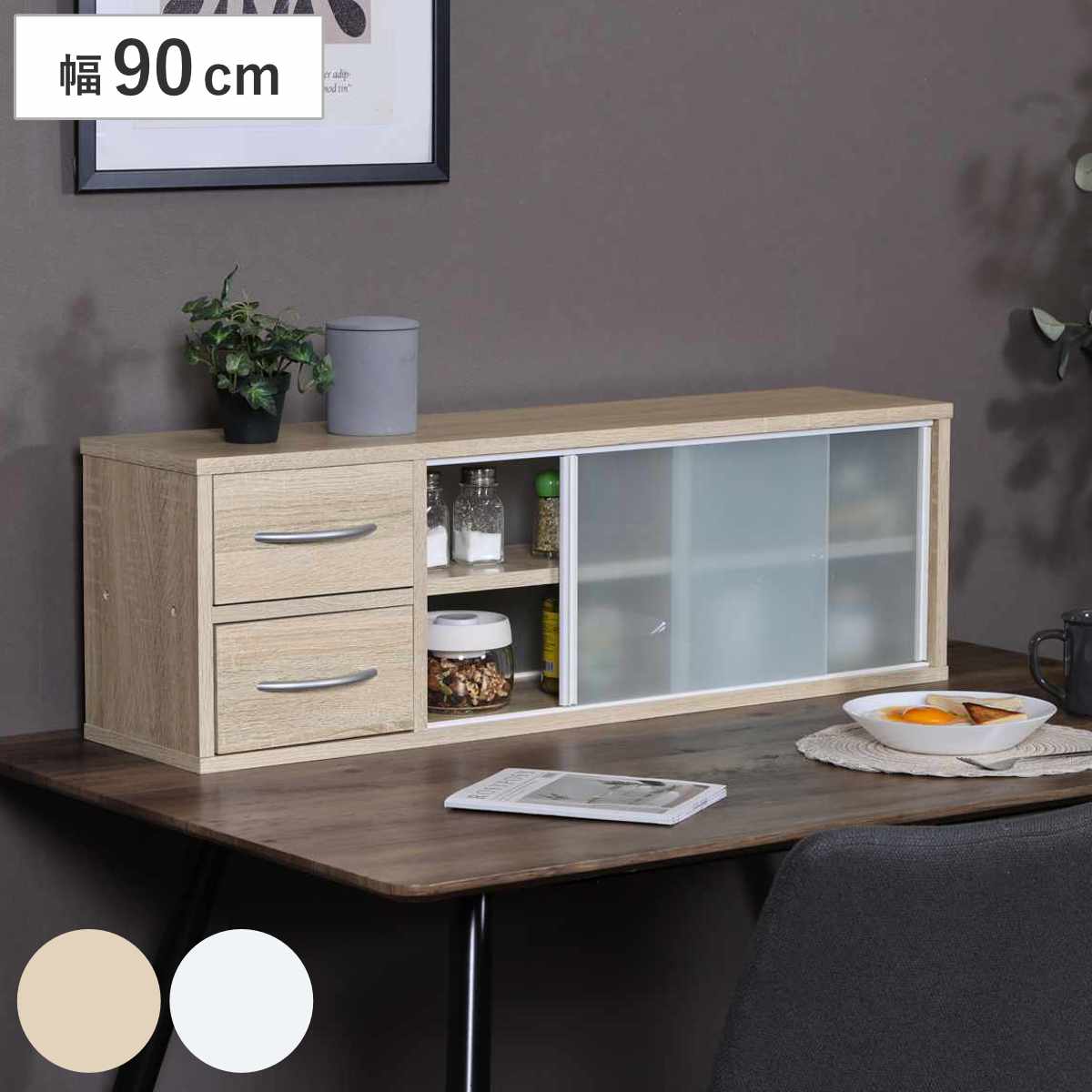 片側には引出しが2段付いています。カトラリーや文房具、小物などをスッキリ隠して収納できます。