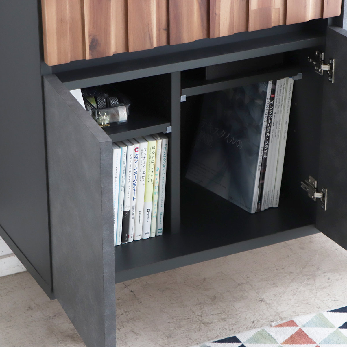 モダンな空間作りに欠かせない贅沢な収納力があります。可動式の棚板が付いているので、置きたい物に合わせたお好みのレイアウトで収納できます。生活感のあるものをなるべく視界から排除することでモダンなインテリアが完成します。