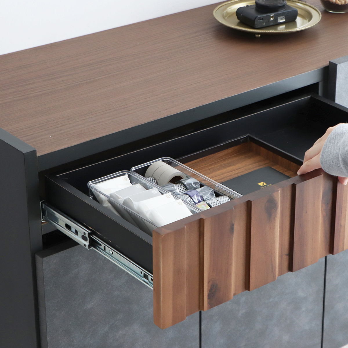 小物類もすっきりと収納できる引出しです。スライドレールが付いているので、軽い力で引き出せ開閉がスムーズです。