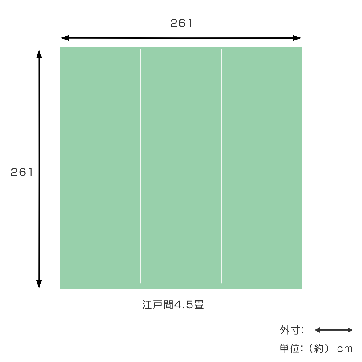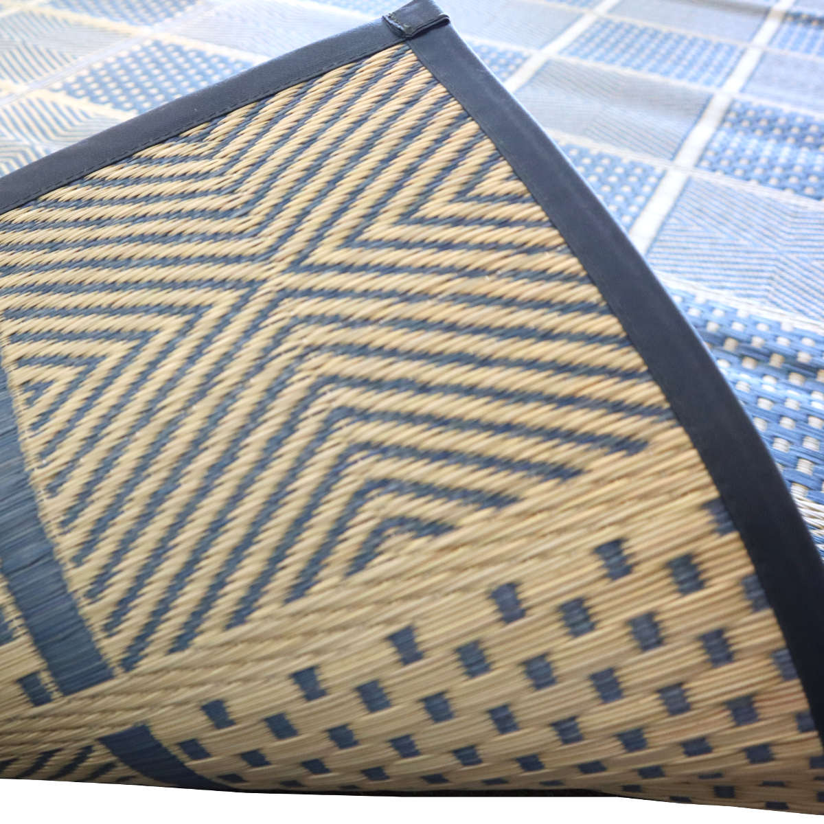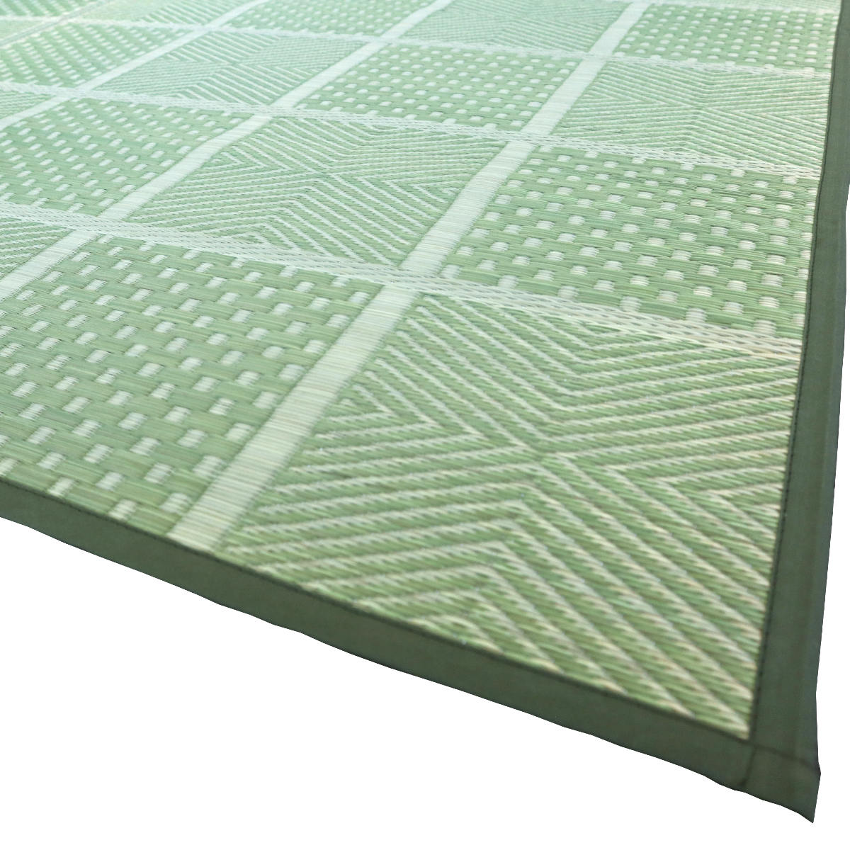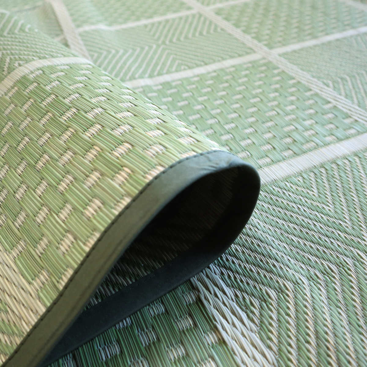い草を織り込む経糸の間口を変えて紋様を織り出したもので、約209本の経糸が複雑な紋様をつくり出します。最も技巧的で折柄の変化に富む一品です。江戸間4.5畳用は大きめのラグとして、3人掛けソファーやローテーブルの下に敷いてもゆったりと使えるサイズ感です。畳の気になる箇所だけ敷いたり、ラグの代わりに敷いたり、様々なシーンにお使いいただけます。