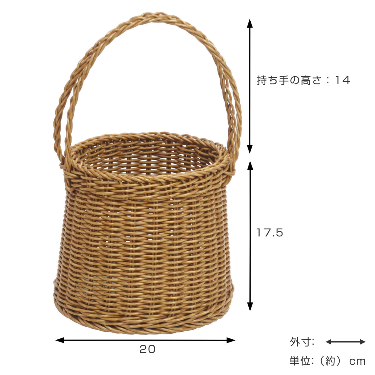 | サイズ | 約 高さ17.5(cm) 直径:約 20(cm) 持ち手:約 高さ14(cm) |