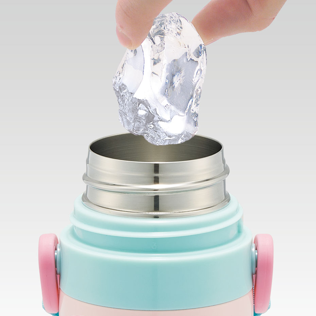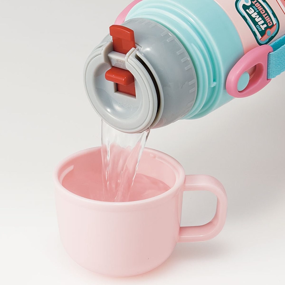 蓋と中栓を付けると、コップ飲みの水筒になります。温かい飲み物や冷たい飲み物にもご使用いただけます。