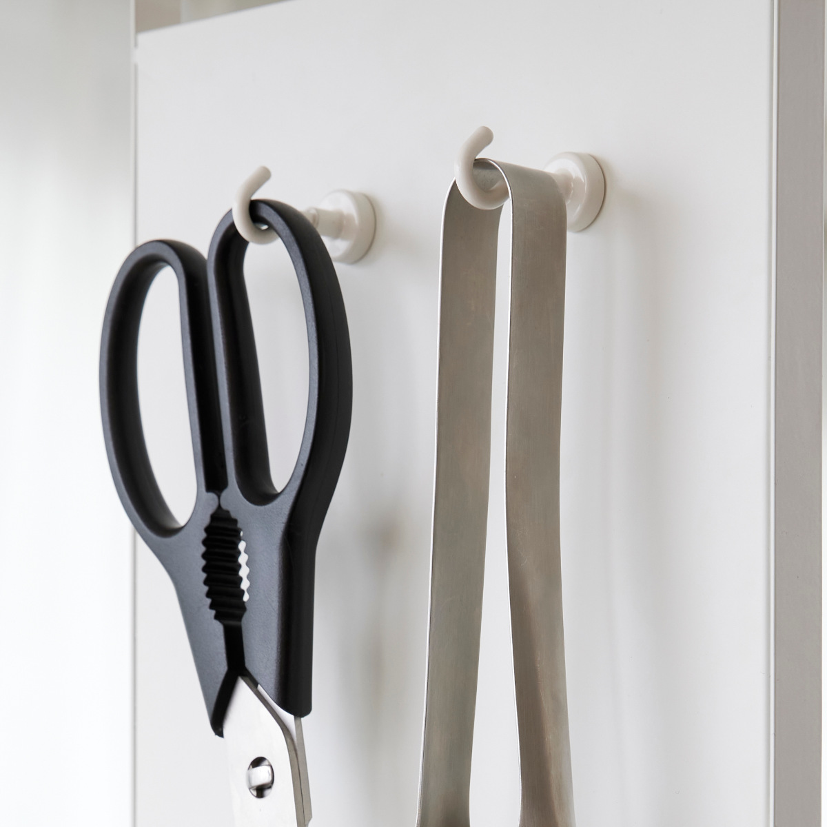 強力なネオジウム磁石を採用したマグネットフックです。玄関扉や冷蔵庫など、マグネットが付く壁面に取り付けるだけで、手軽に収納スペースを増やせます。