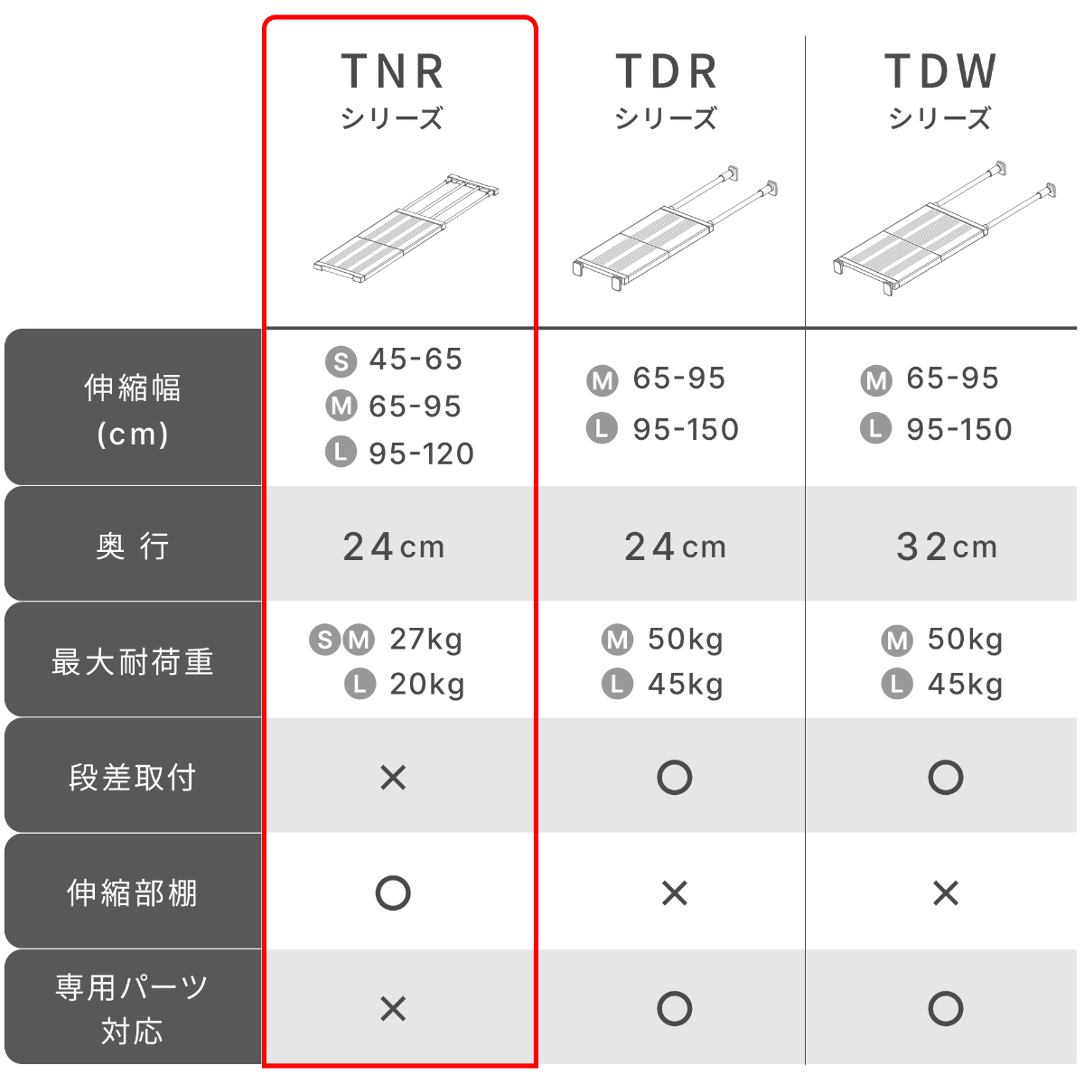 ![]() 幅95~120×奥行24×高さ3.4(cm) | ![]() 幅95~150×奥行24×高さ5.6(cm) | ![]() 幅95~150×奥行32×高さ5.6(cm) |