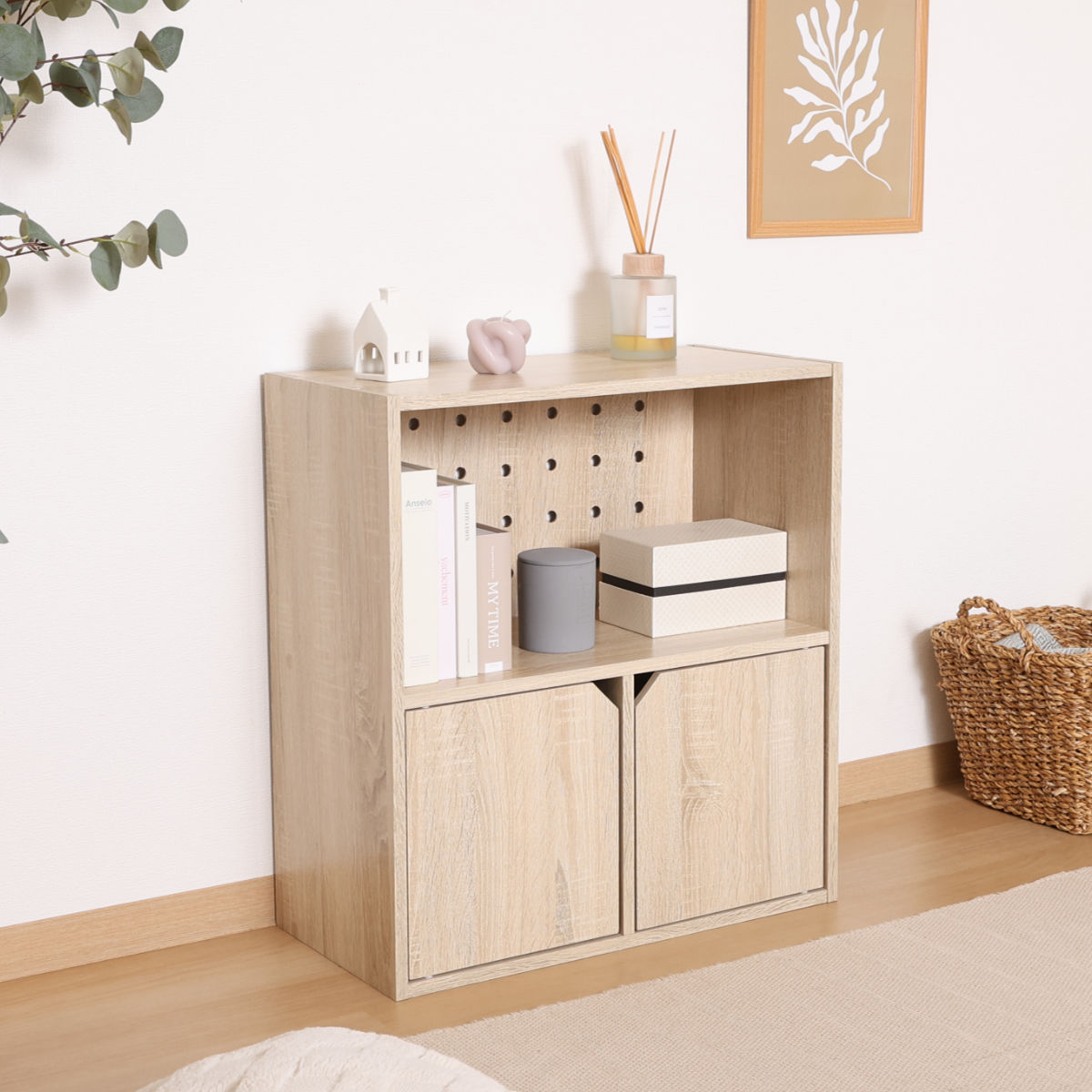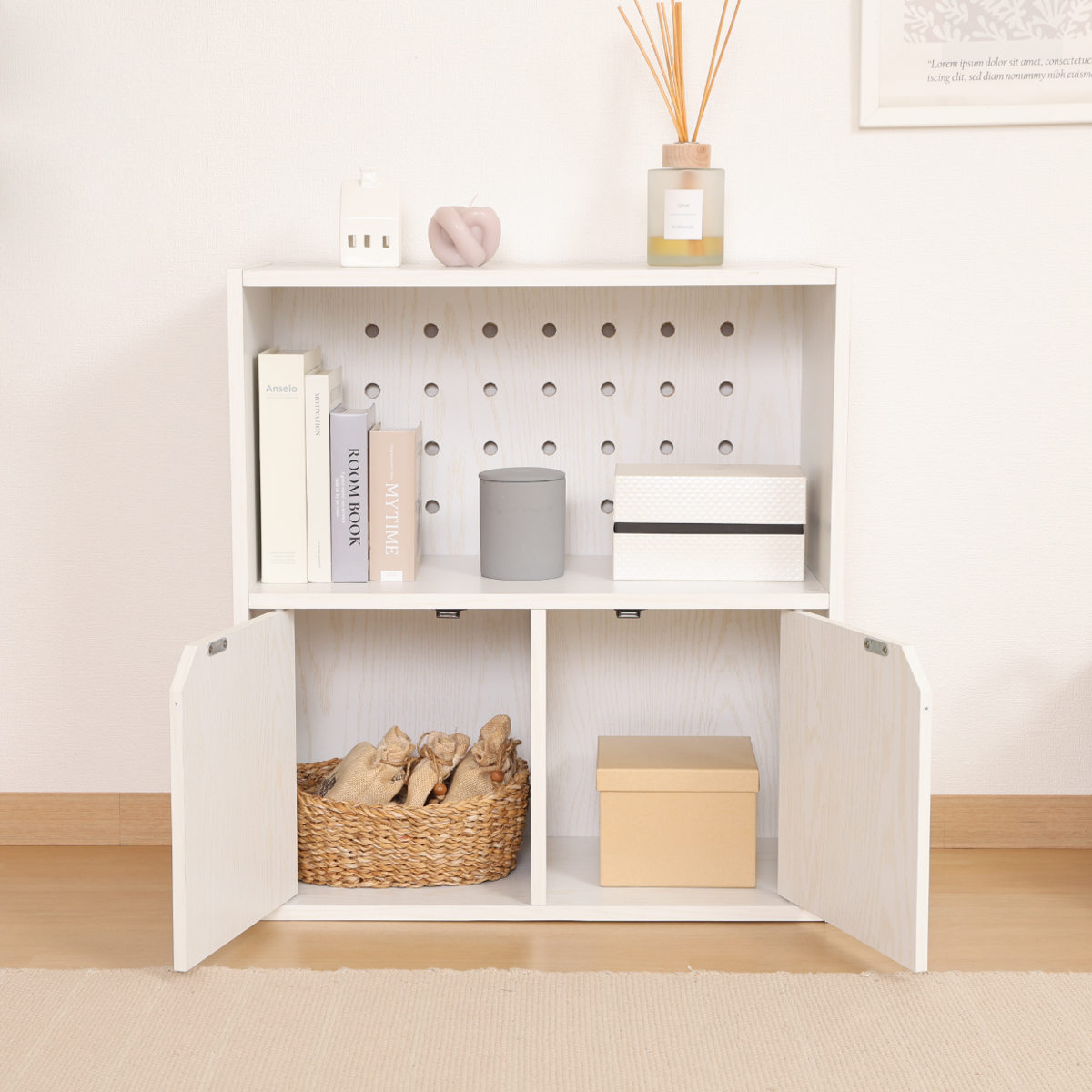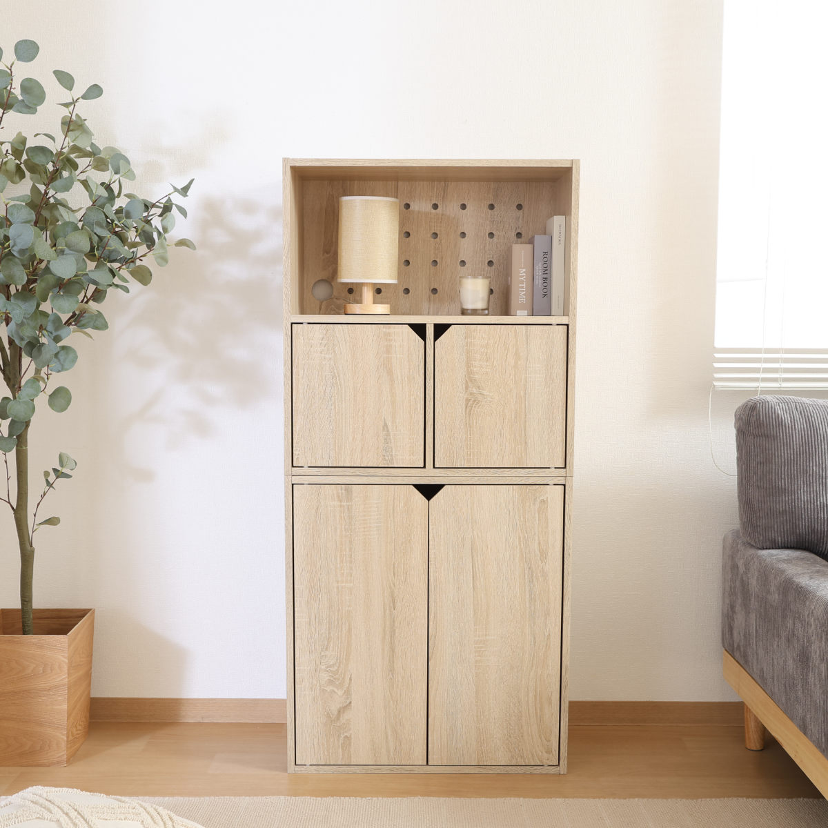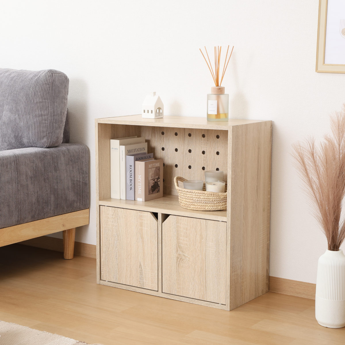 見せる収納と隠す収納、どちらもお楽しみいただけます。上段は、出し入れがしやすい扉のないオープンスペースで、お気に入りの小物を飾ってもOK。下段の扉収納には、書類や隠しておきたい大切なものを収納しておけます。