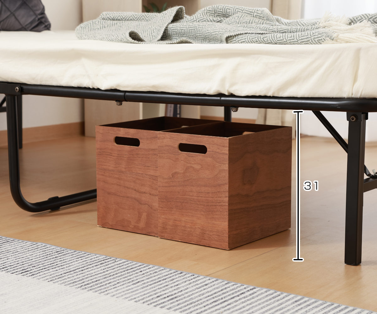 ベッド下は31cmあり、収納ボックスやスーツケースなどを収納できます。また、お掃除もしやすいので、ホコリやダニの蓄積を防ぎ、快適な睡眠環境を維持できます。