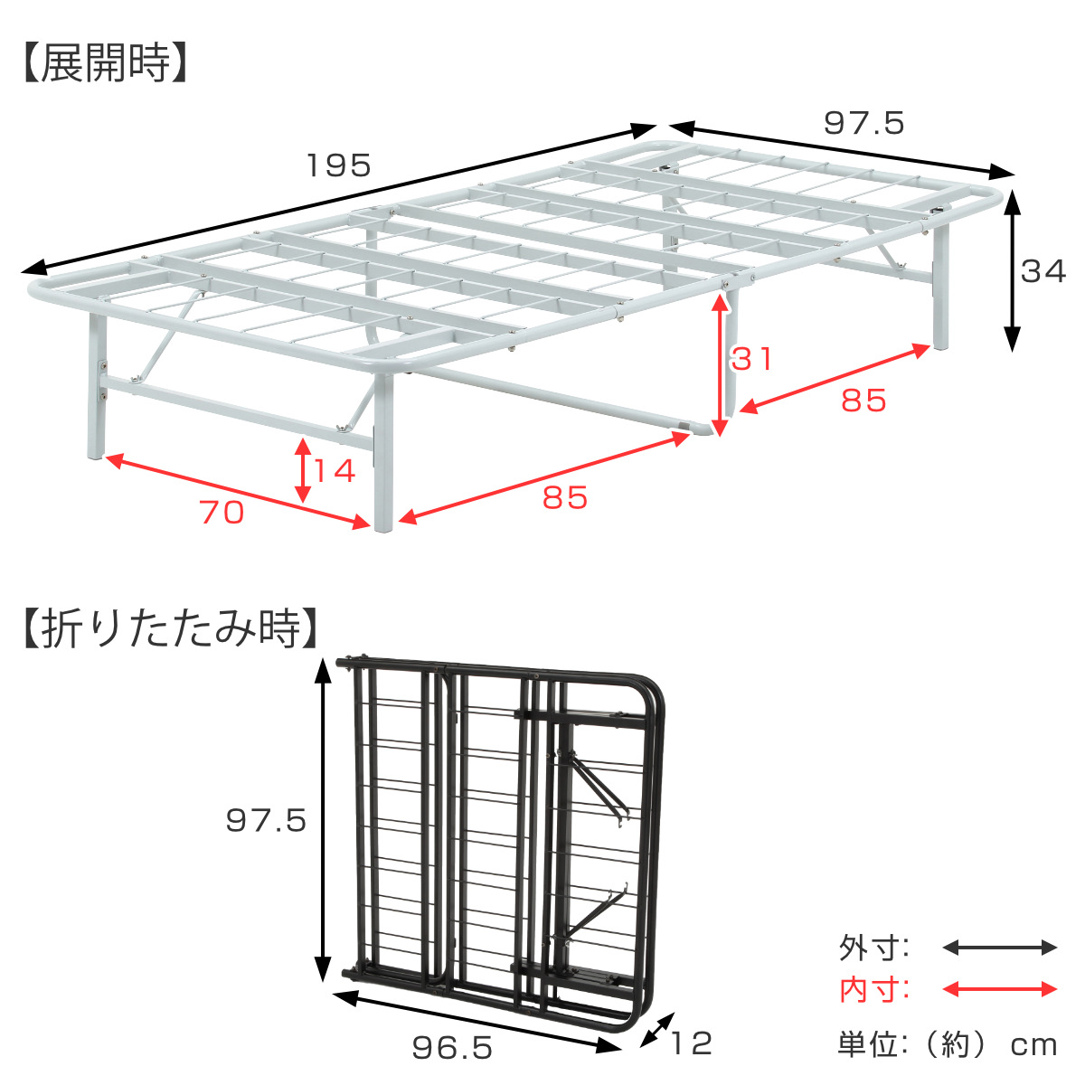 | サイズ | 約 幅97.5×奥行197.5×高さ34(cm) 折りたたみ時:約 幅96.5×奥行12×高さ97.5(cm) |