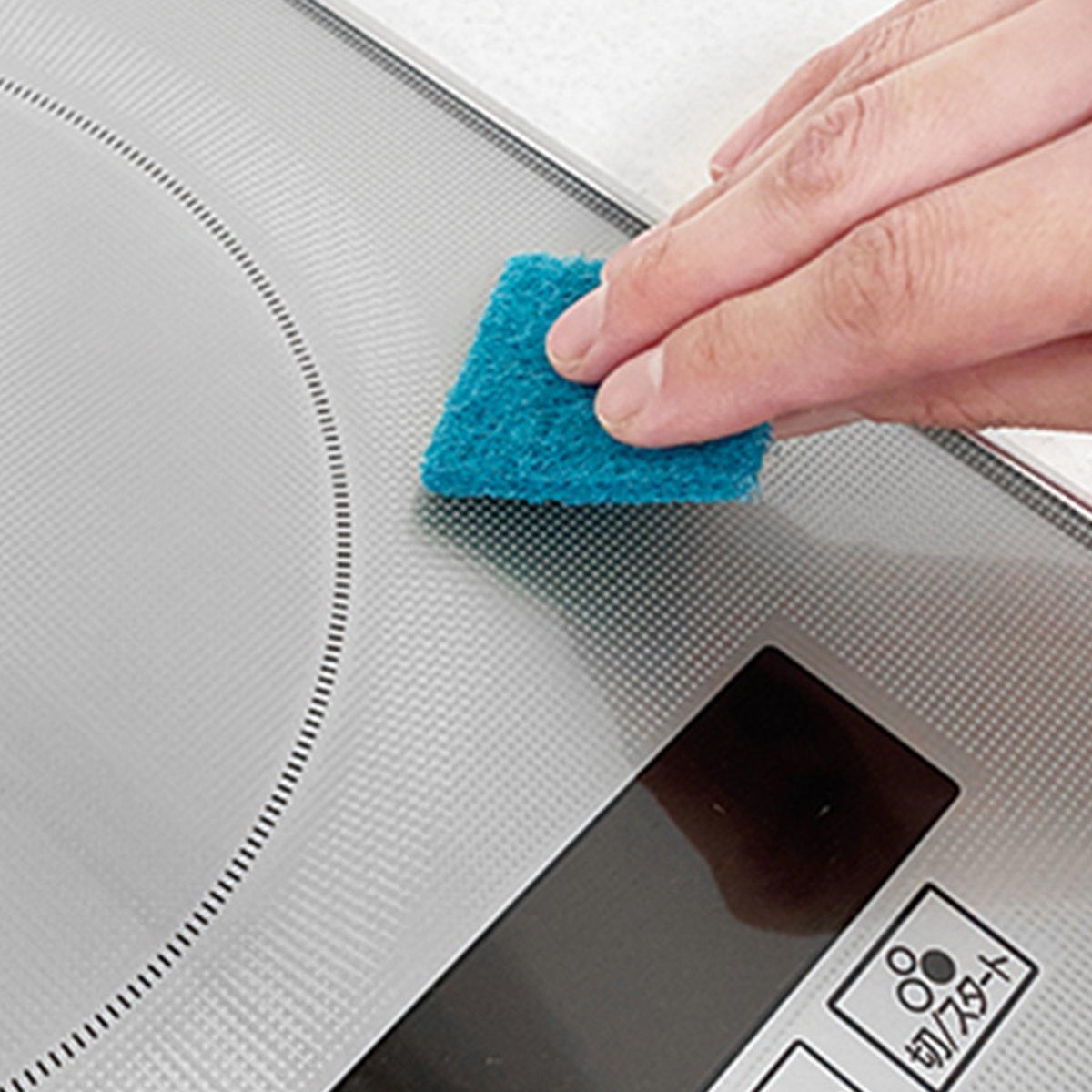 人工ダイヤモンド研磨材付の不織布を使用したお掃除パッドです。キッチンのコンロ周りのガンコ汚れや、ガラストップのコビリツキ汚れを落とします。