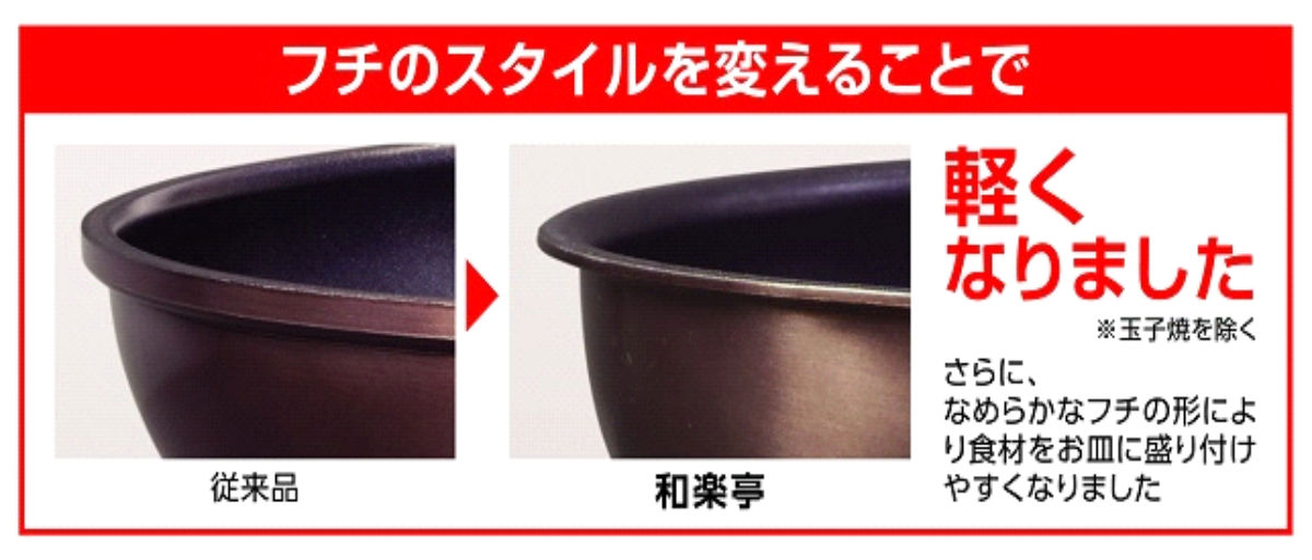 フチのスタイルを変えることで軽くなり、滑らかな形によって食材をお皿に盛り付けやすくなりました。