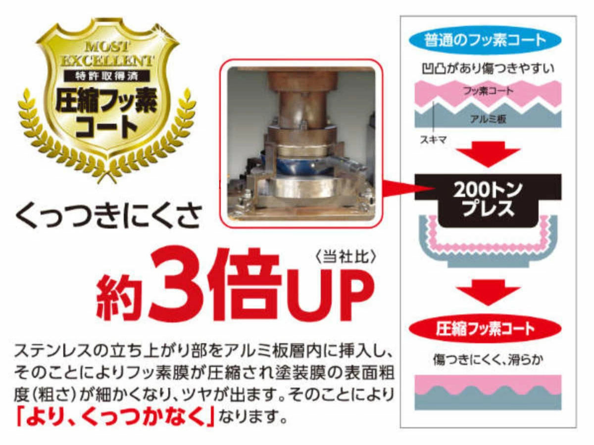 ●圧縮ふっ素コートで、よりくっ付きにくくなりました。
