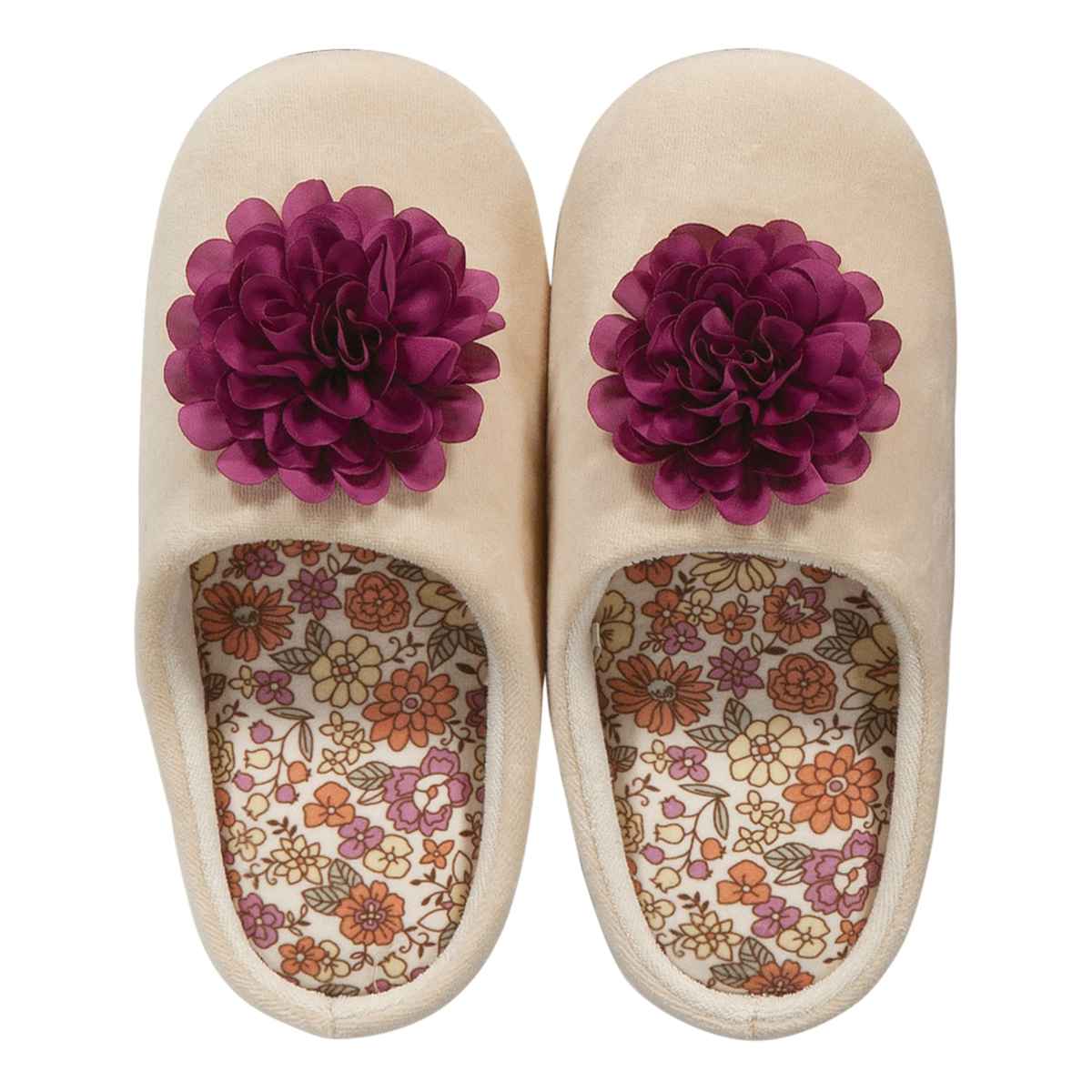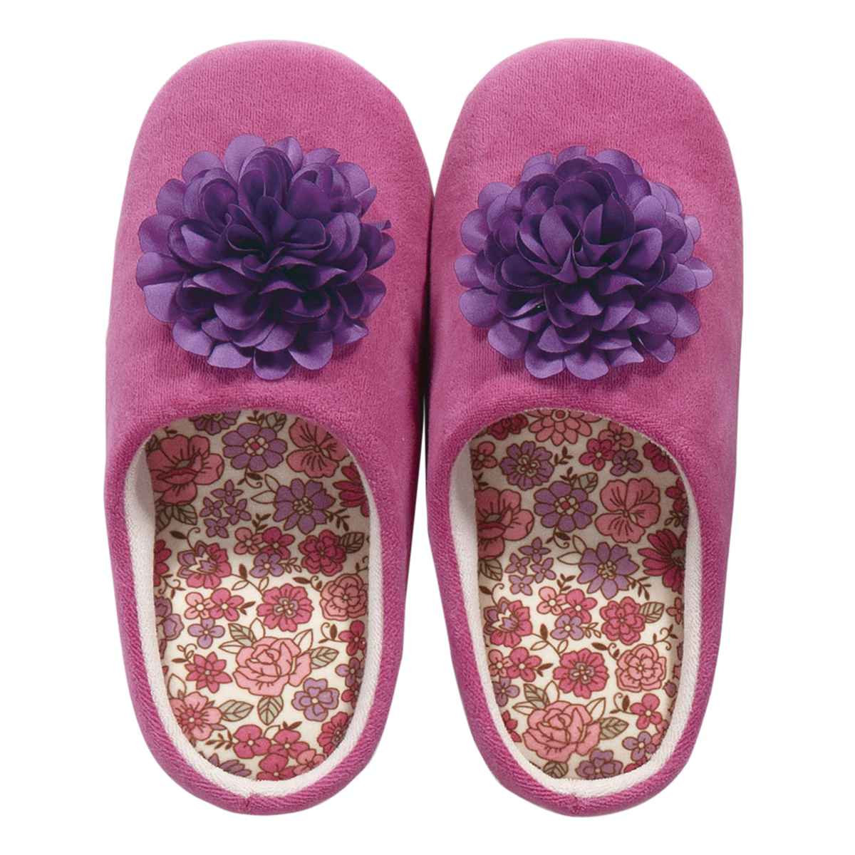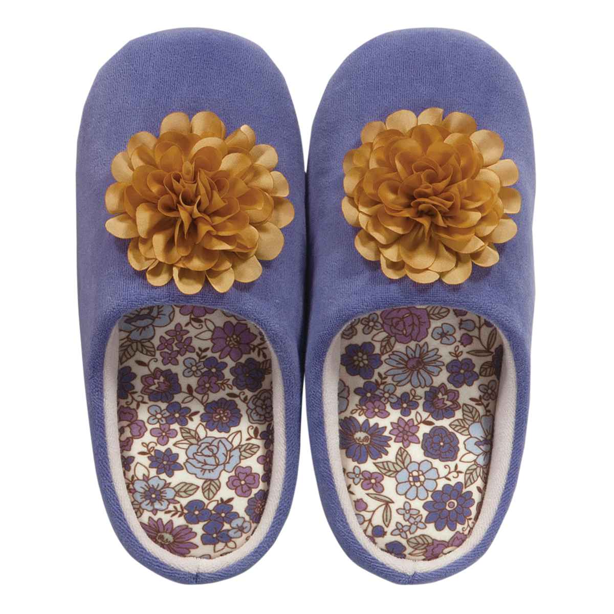 大きな花のモチーフと、リバティ風の小花柄がかわいいリビングスリッパ。お部屋にそっと華やぎを添えてくれる素敵なデザインです。丸洗いができるので、汚れても気軽にお洗濯ができ、いつも清潔にお使いいただけます。