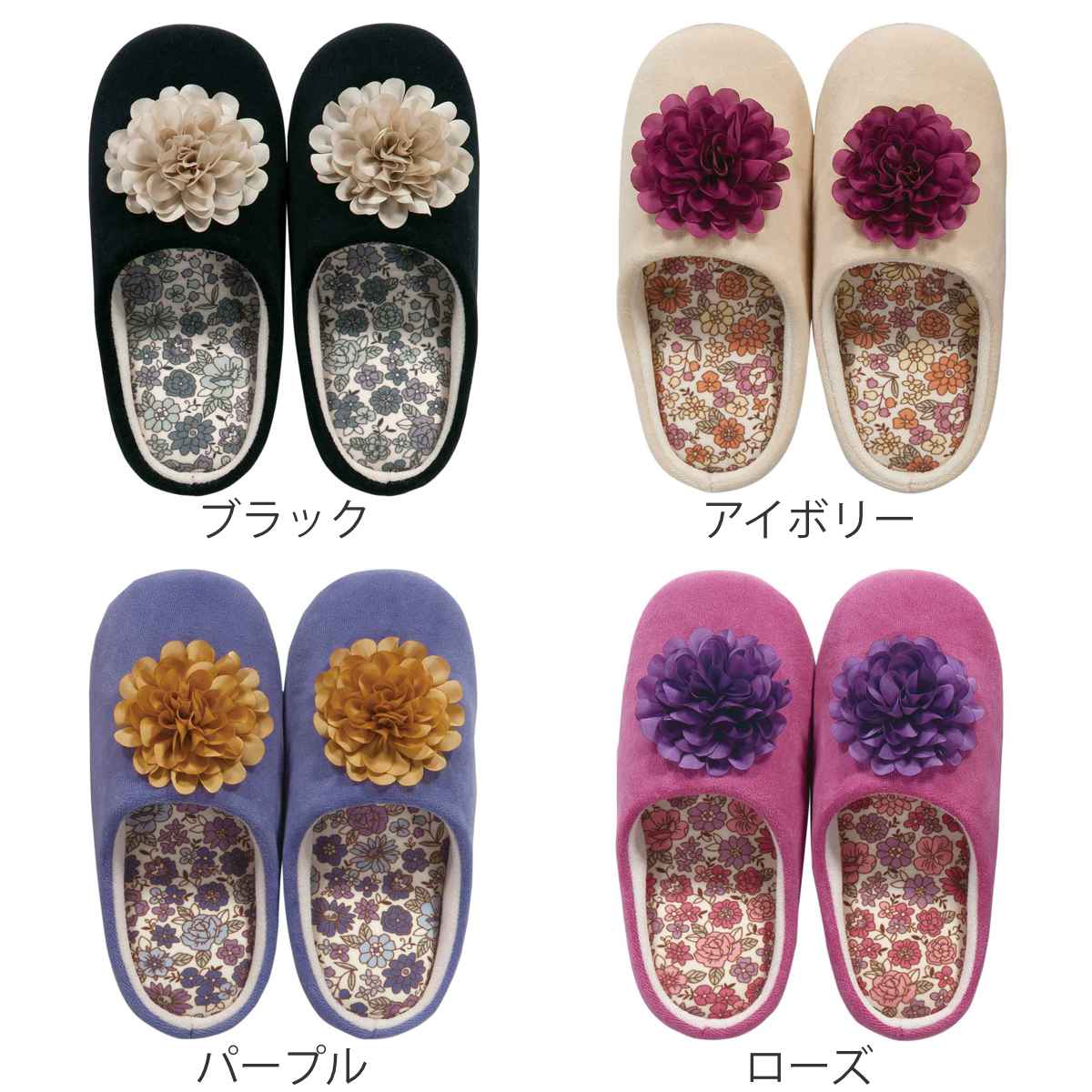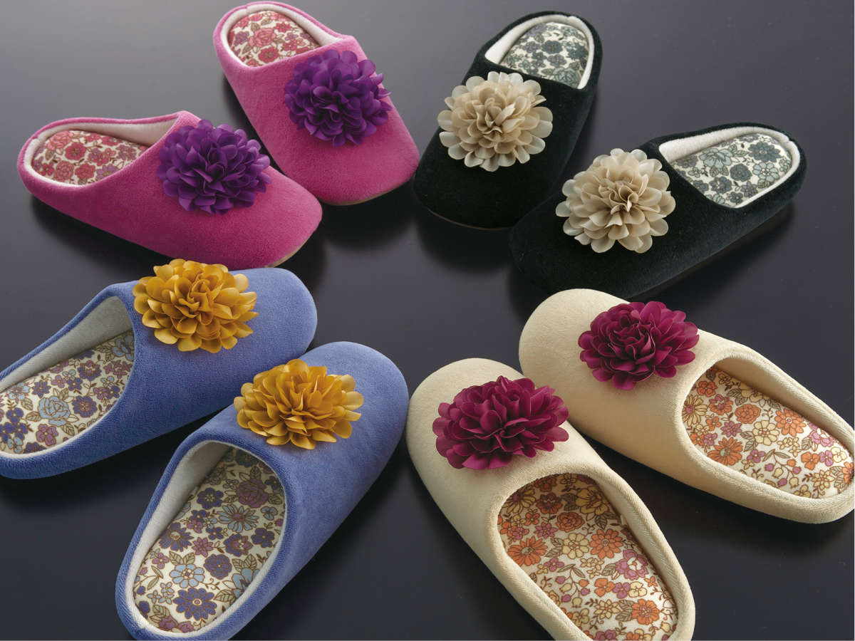 ●大きな花のモチーフとリバティ風の小花柄がかわいいリビングスリッパです。