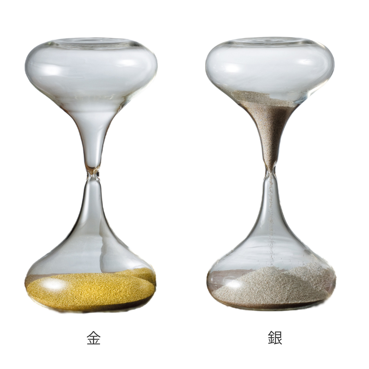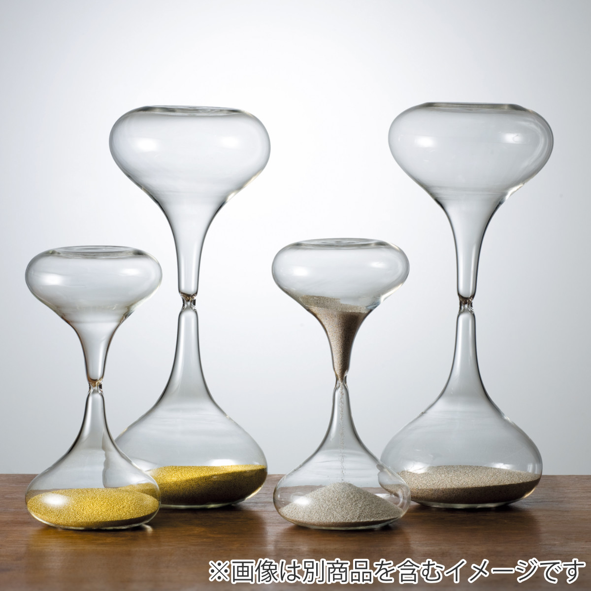 ●クリアなガラスの中で滑らかに流れ落ちる砂が、美しく際立ちます。