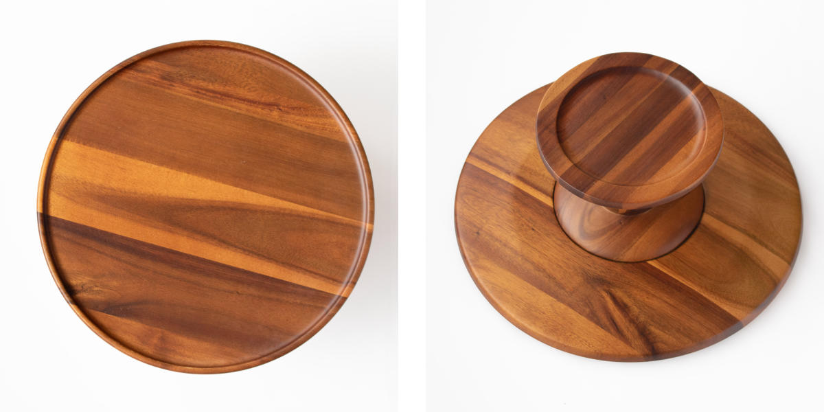 天然木の温かみのある風合いと自然な木目が美しい、存在感たっぷりの大判サイズのコンポートディッシュです。パーティー用の大皿として、テーブルの中心に置けば見た目も豪華に。サラダやフルーツの盛り合わせにもおすすめです。