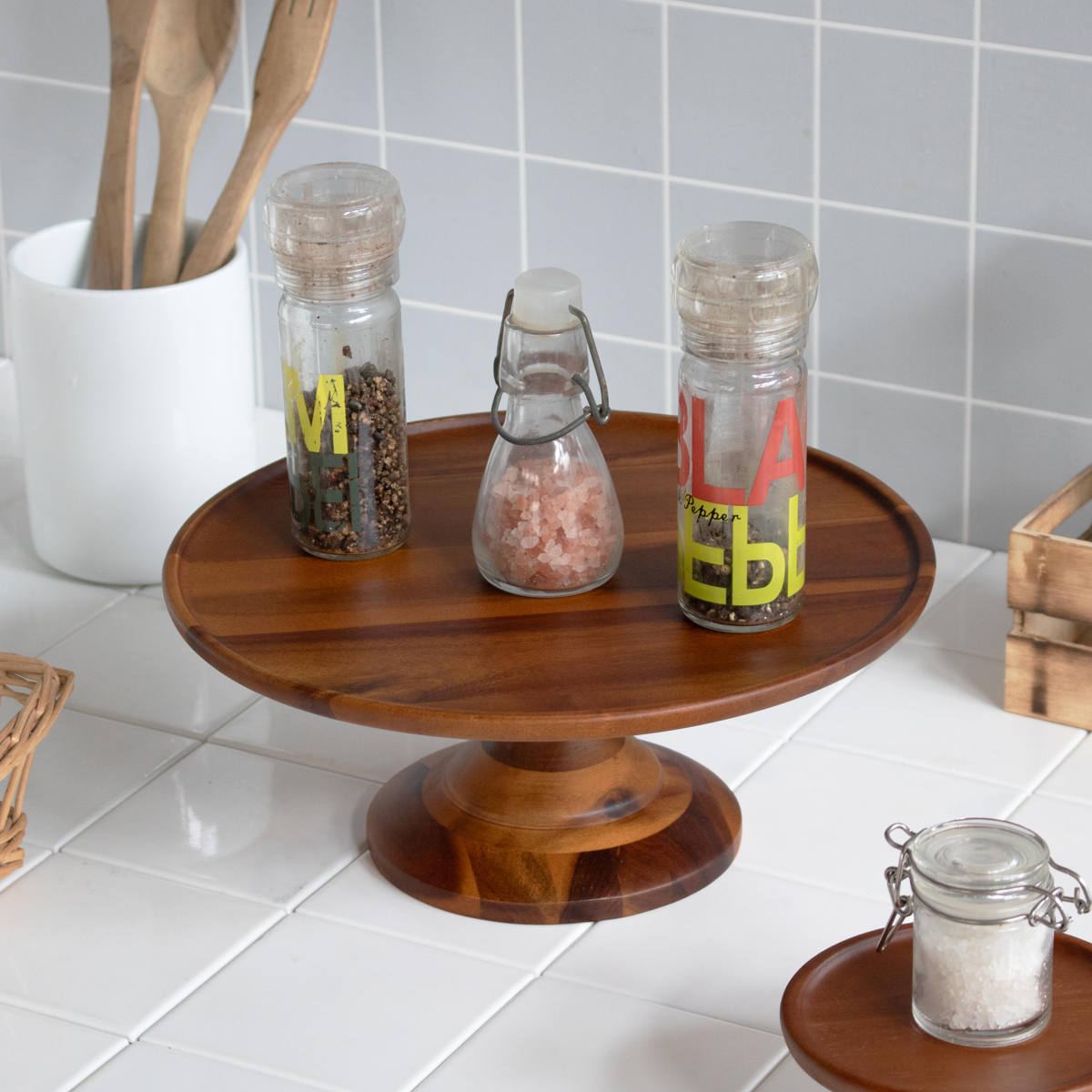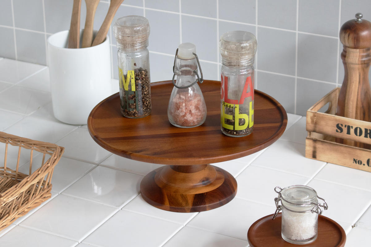 高さのあるコンポートディッシュは、スパイススタンドとしても活躍します。調味料ボトルやスパイスジャーをまとめて置くことで、キッチン周りをすっきり整理できます。ダイニングテーブルに置きっぱなしにしても見せる収納としてさりげないアクセントを添えてくれます。