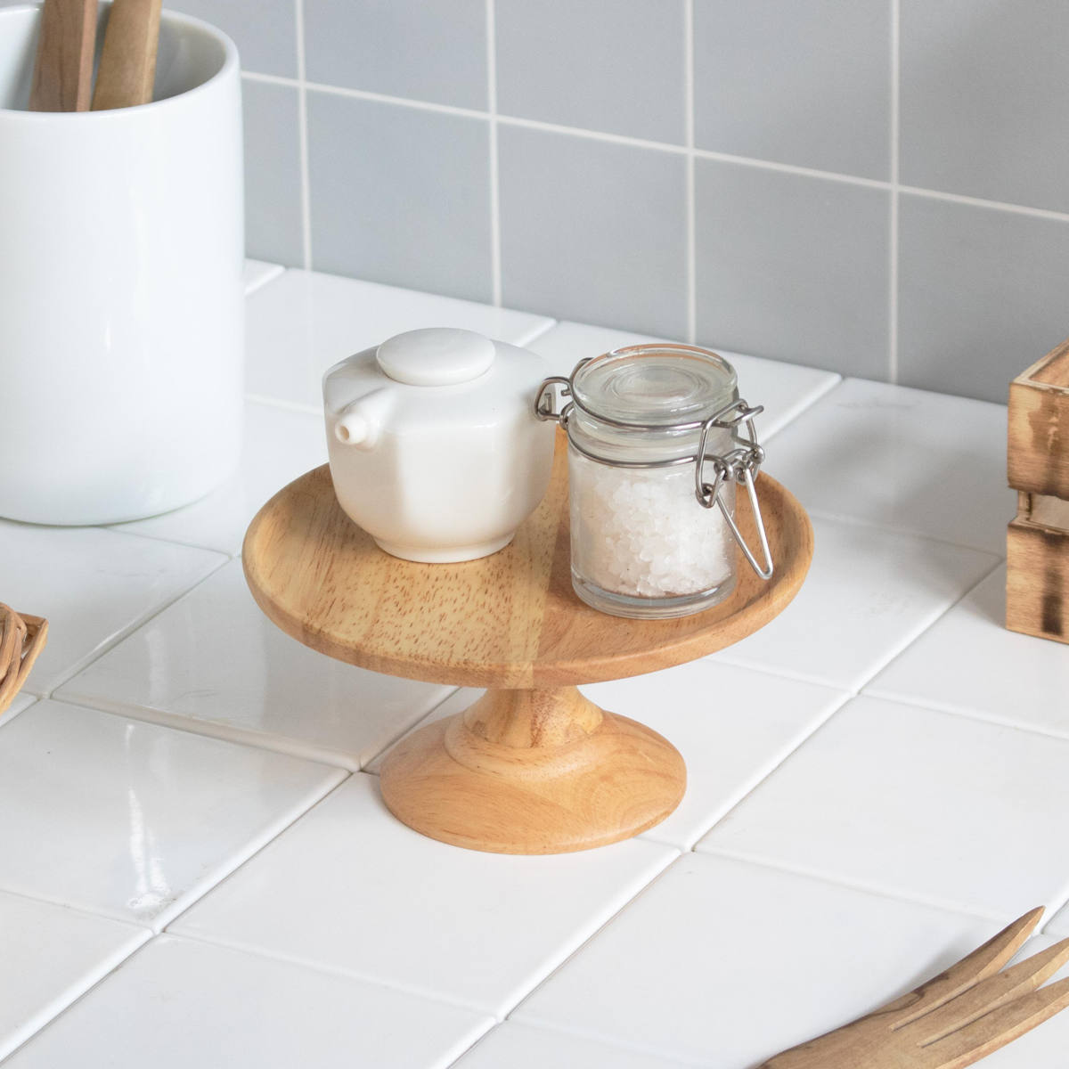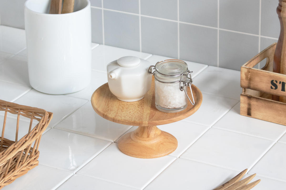 高さのあるコンポートディッシュは、スパイススタンドとしても活躍します。調味料ボトルやスパイスジャーをまとめて置くことで、キッチン周りをすっきり整理できます。ダイニングテーブルに置きっぱなしにしても見せる収納としてさりげないアクセントを添えてくれます。