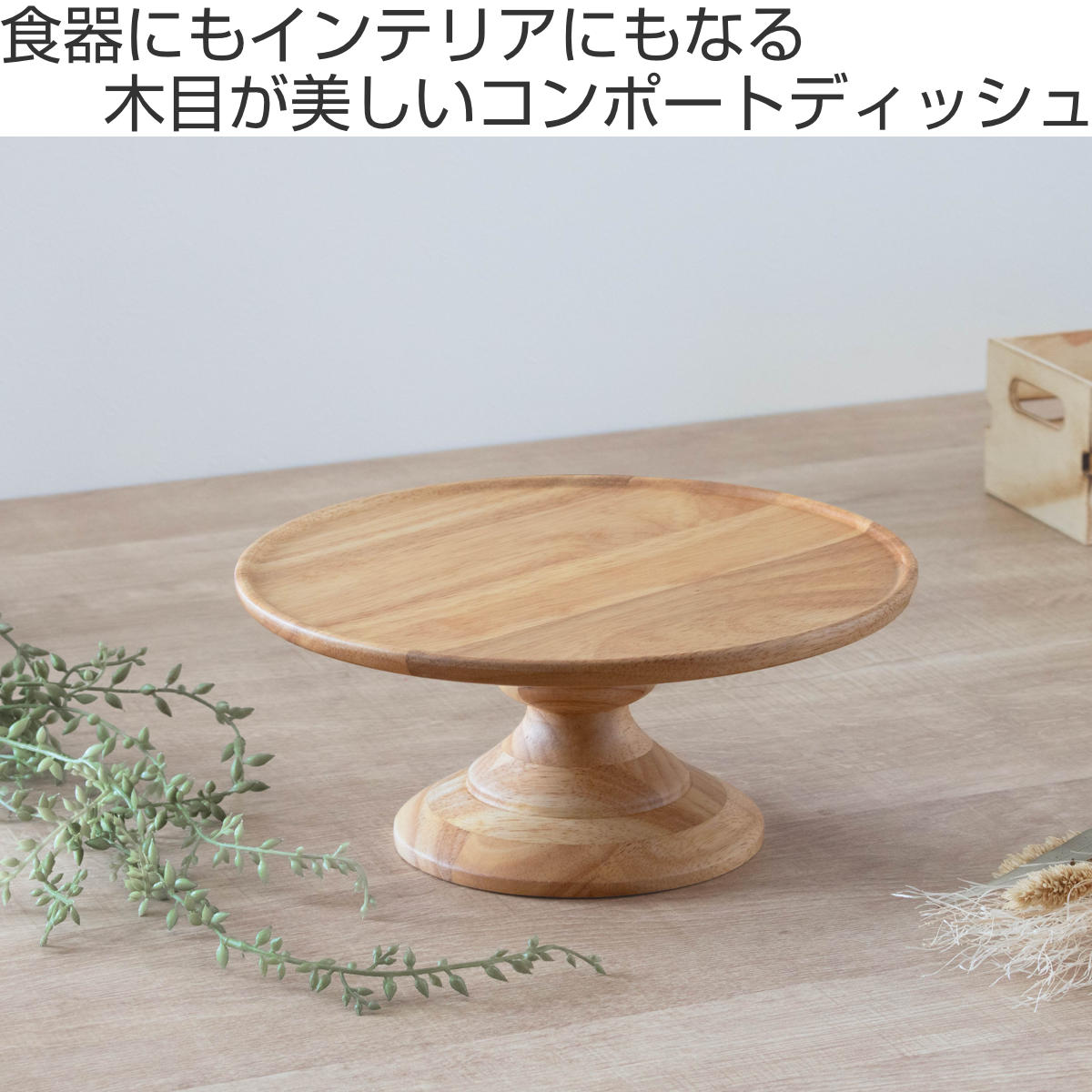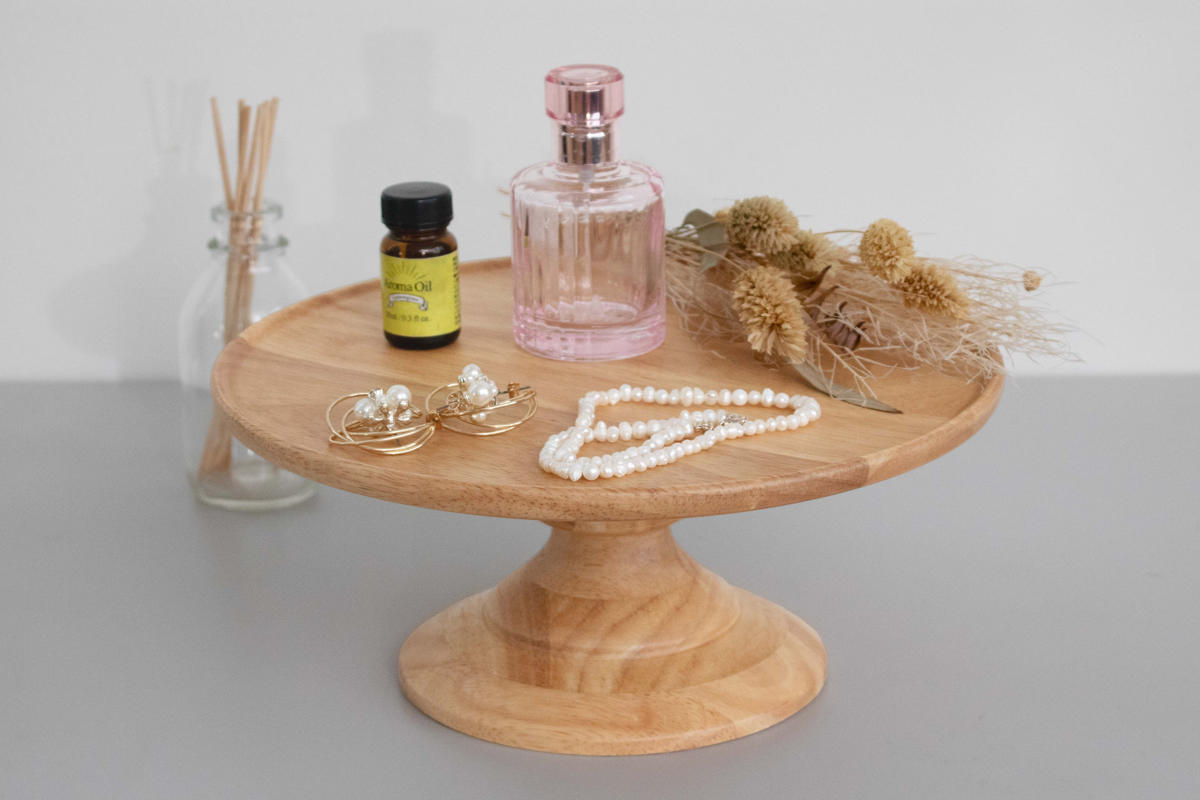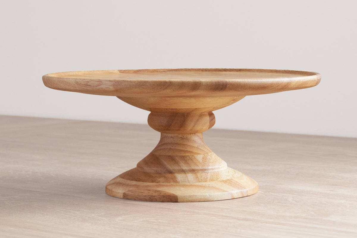 天然木の温かみのある風合いと自然な木目が美しい、家族でシェアするケーキやフルーツ、パンを置くのに十分なサイズのコンポートディッシュです。大きめの盛り付けでも見栄えよく、存在感があります。