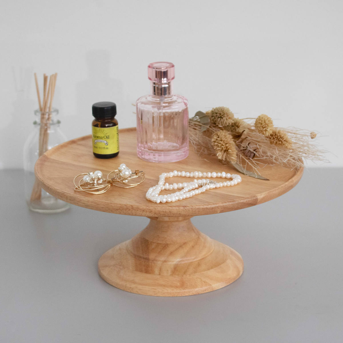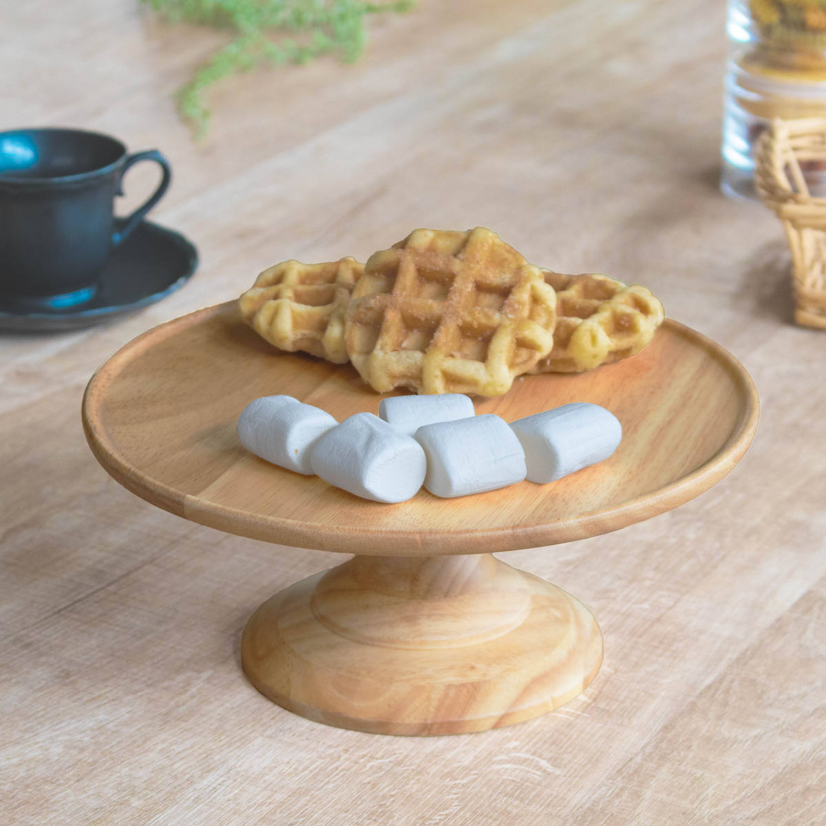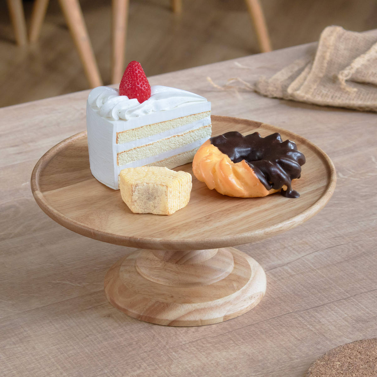 天然木の温かみのある風合いと自然な木目が美しい、家族でシェアするケーキやフルーツ、パンを置くのに十分なサイズのコンポートディッシュです。大きめの盛り付けでも見栄えよく、存在感があります。