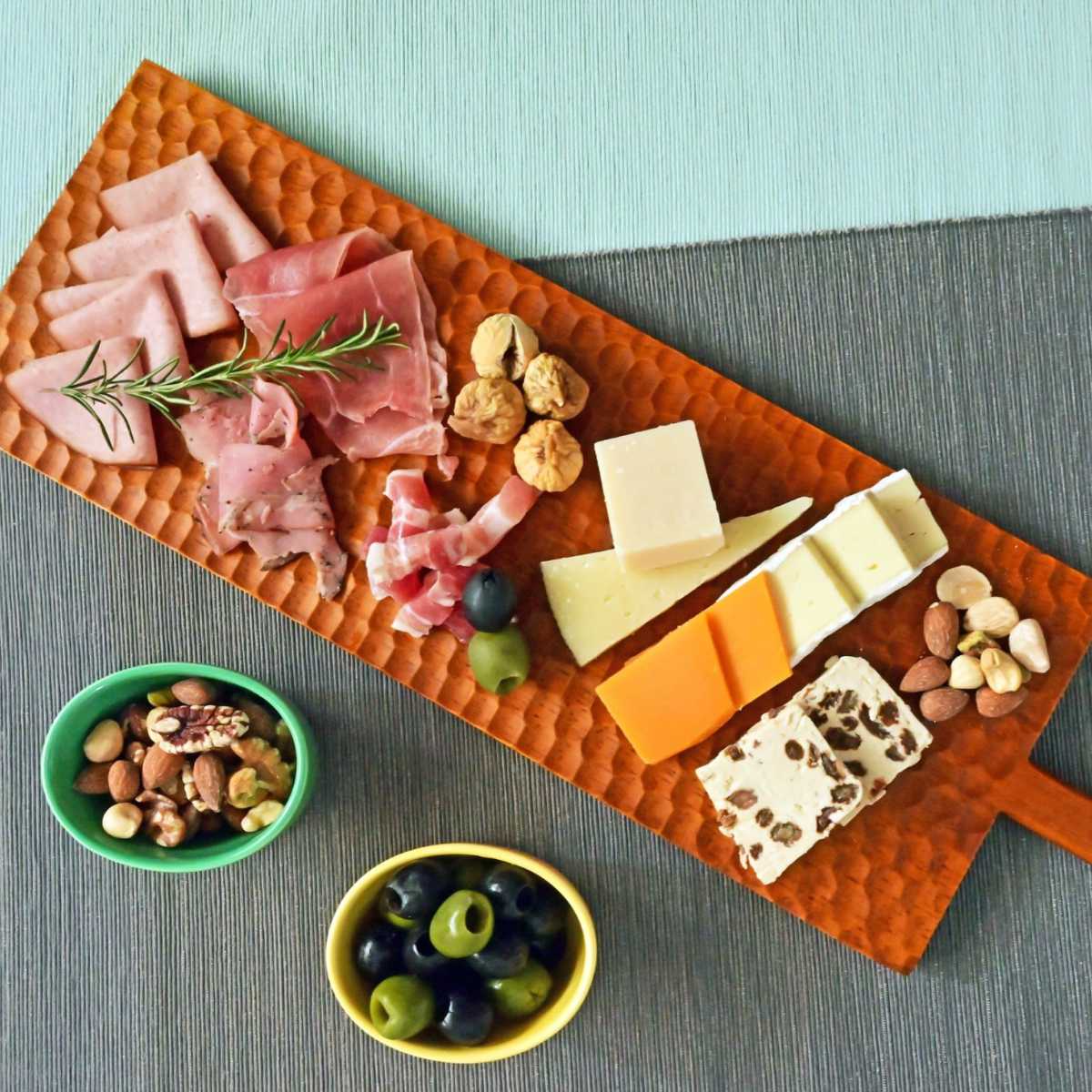 天然のラバーウッドを使用し、表面に立体的な彫りを施した長角ボードです。ホームパーティーやおもてなしのシーンにぴったりで、チーズやハム、フルーツなどを盛り付けるだけで食卓を華やかに演出します。ハンドル付きで持ち運びやすく、使わない時にはインテリアのように飾って楽しむこともできます。