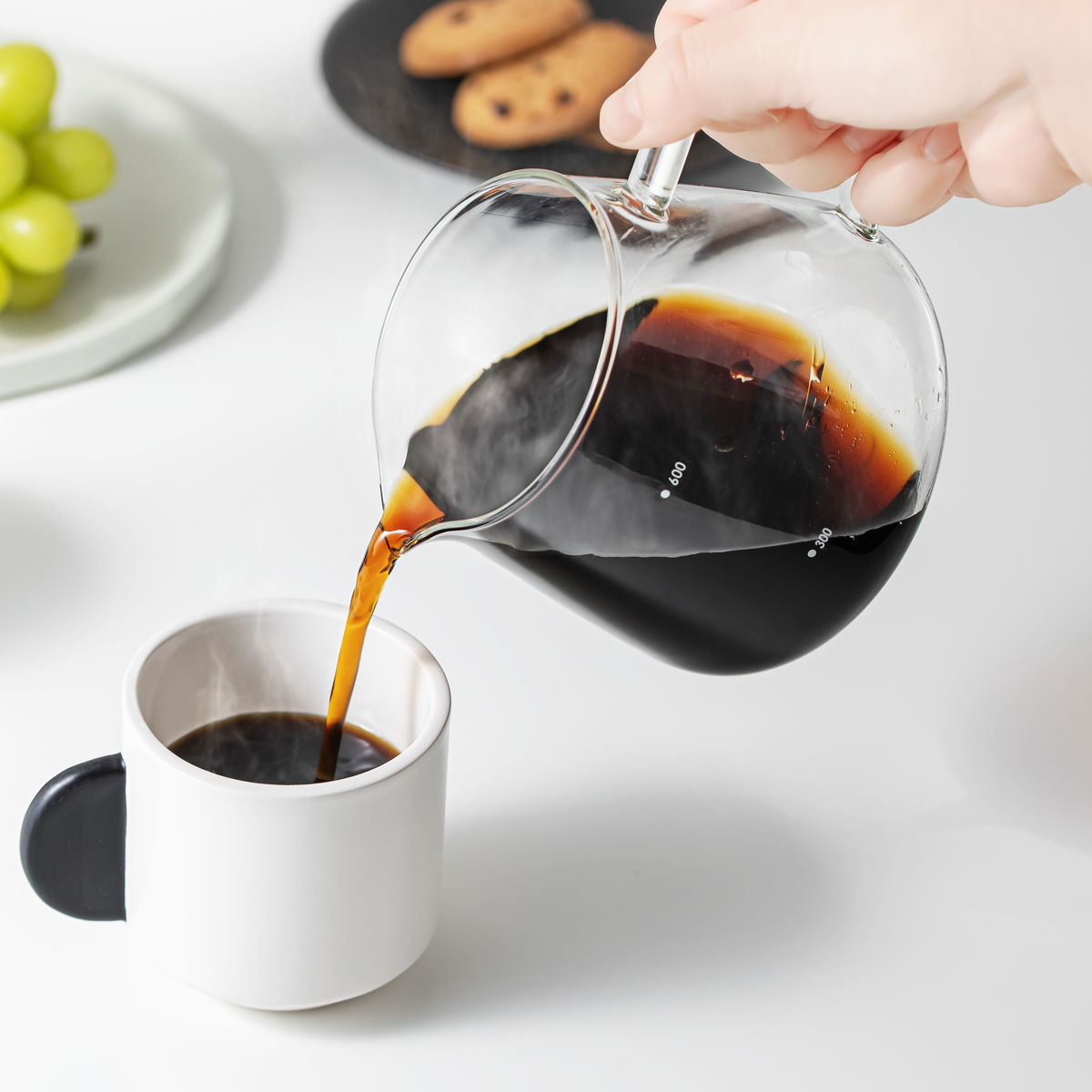 カップにスムーズに注ぎやすく液だれしにくい細めの注ぎ口に加えて、しっかりつかめる大き目の取っ手で男性でも持ちやすく、熱が伝わりにくいので安心して使用できます。