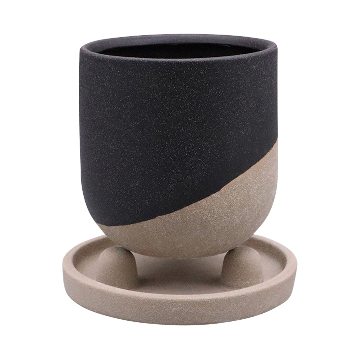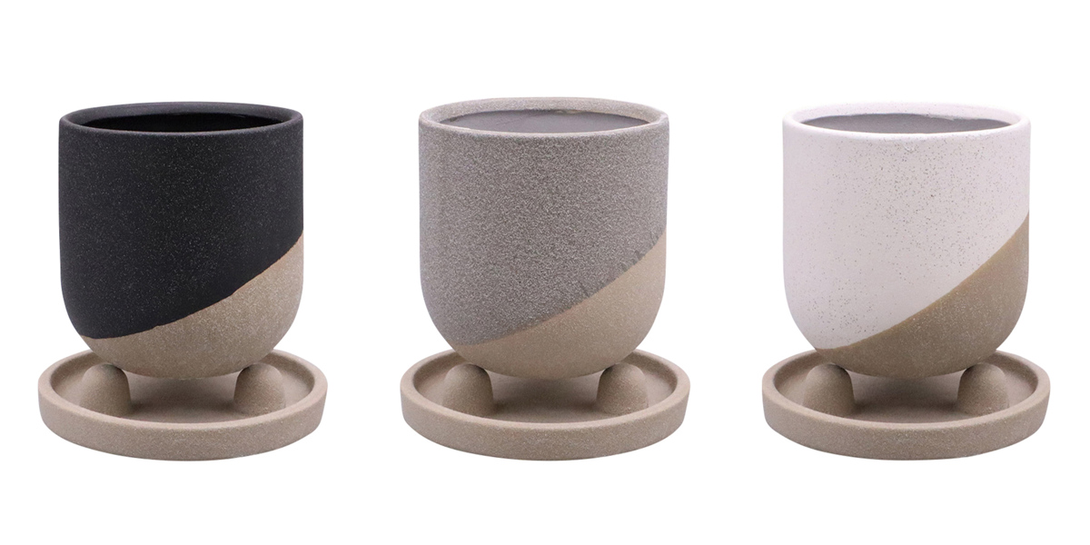 ざらざらとした質感が温かみを感じる植木鉢です。色が斜めに入っており向きを変えると鉢の様々な表情を楽しむことができます。ソーサーの凸凹を利用して角度をつけて飾ることもできるので、インテリアとしてもおすすめです。