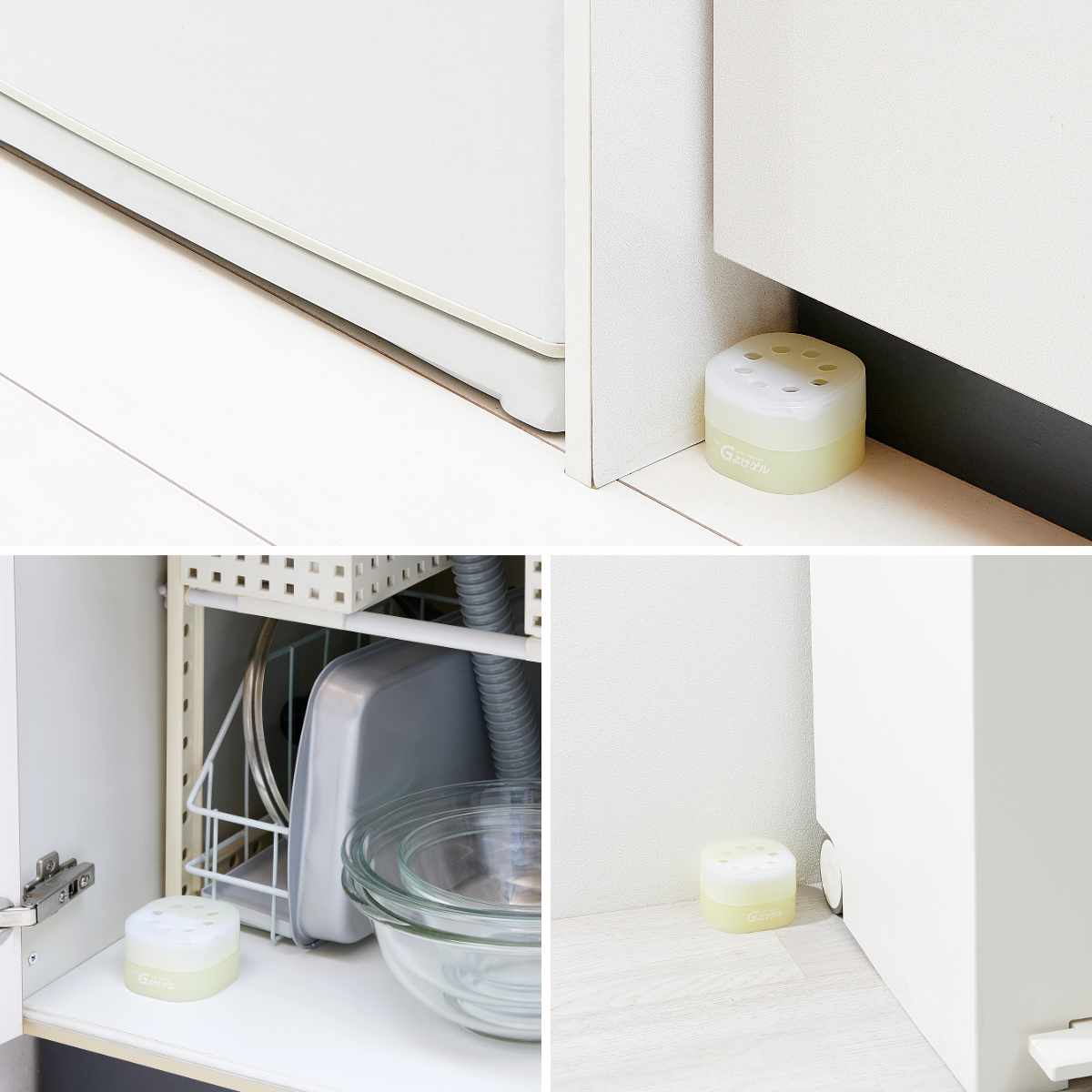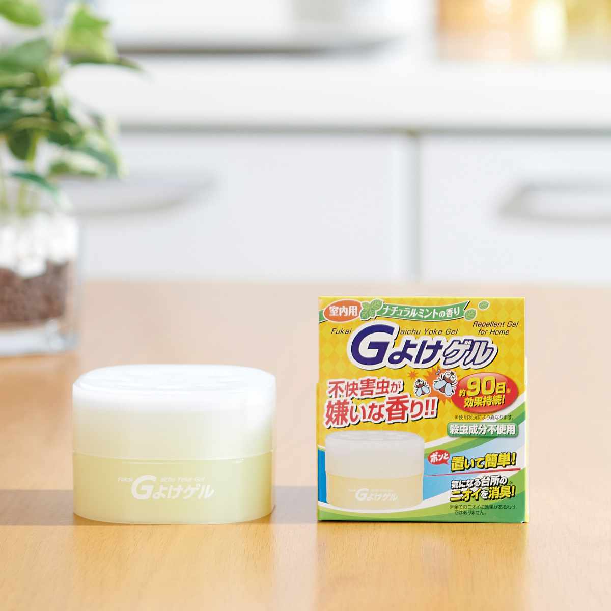 害虫が嫌うミントの香りで、不快害虫の侵入を防ぐGよけゲルです。ポンっと置くだけで簡単に害虫対策ができ、気になる台所のニオイも消臭します。