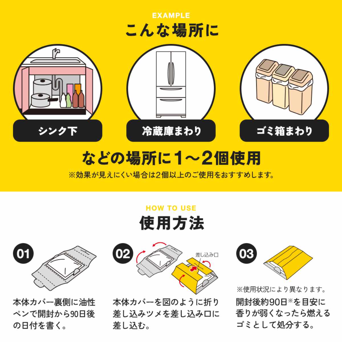 開封後から約90日間効果が持続します。シンク下や冷蔵庫、ゴミ箱の周りなどにおすすめです。