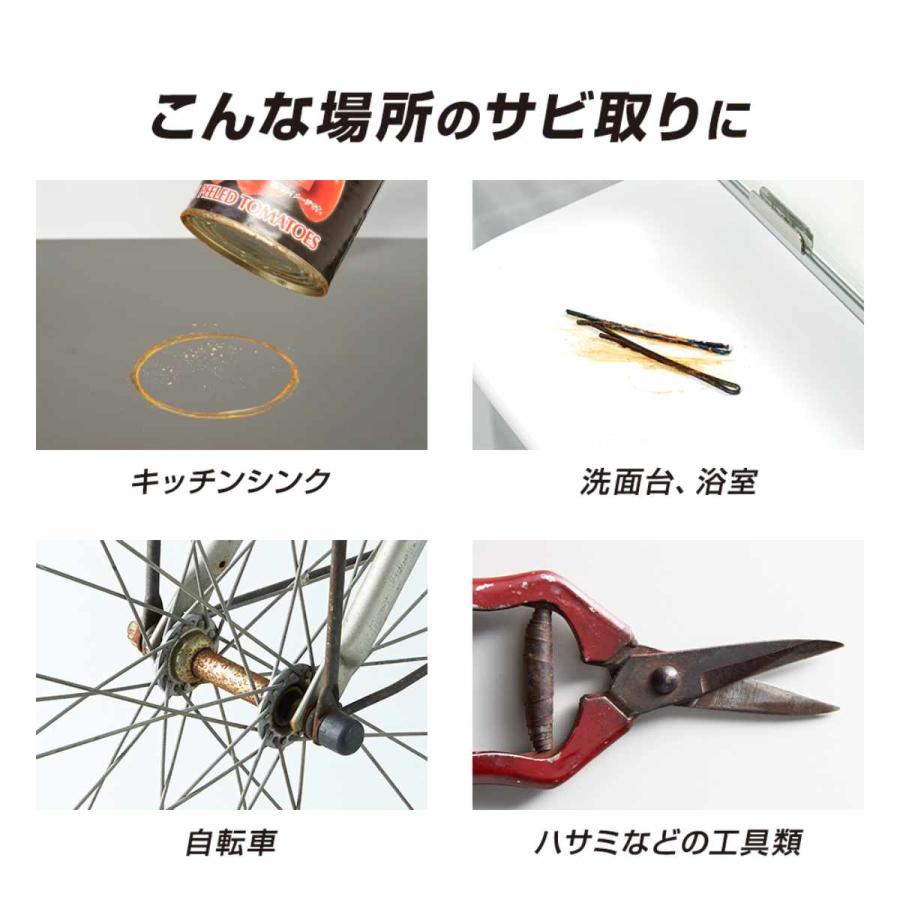 自転車・鎌・ハサミ・スチール製の家具などの頑固なサビを落とすのに便利です。
