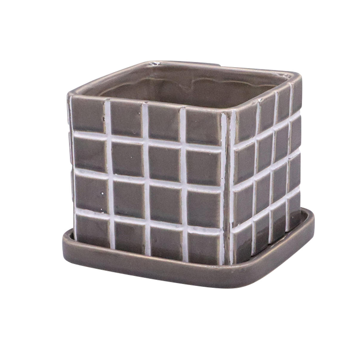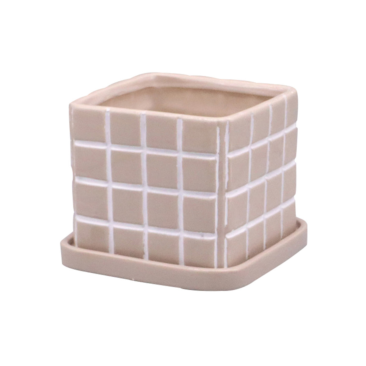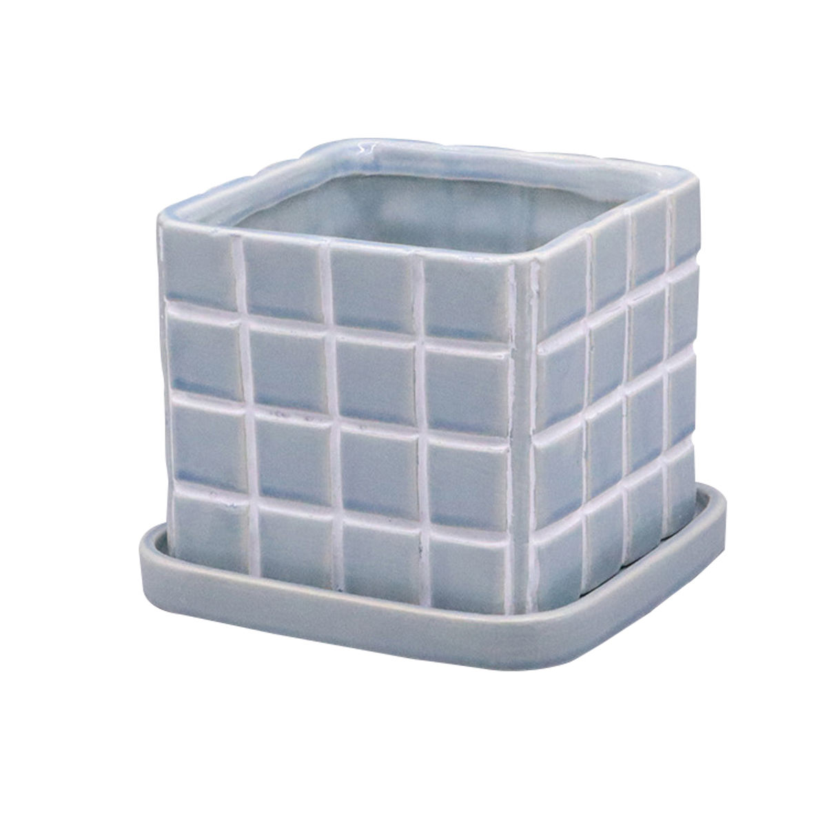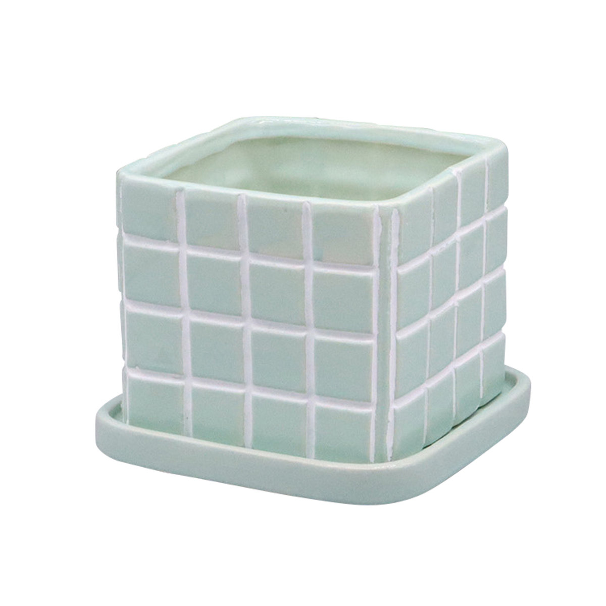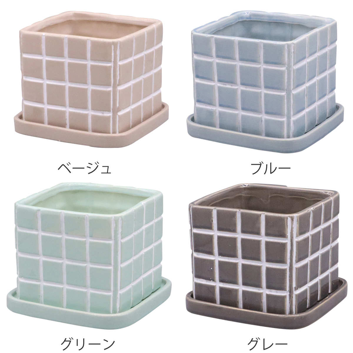 パステルカラーが爽やかな印象のフラワーポットです。幅約13cmと小ぶりなサイズ感なので、棚や窓際などちょっとしたスペースに収まり、インテリアとしても取り入れやすいです。水抜き用の底穴が空いています。受け皿がついているので室内での使用にも最適です。